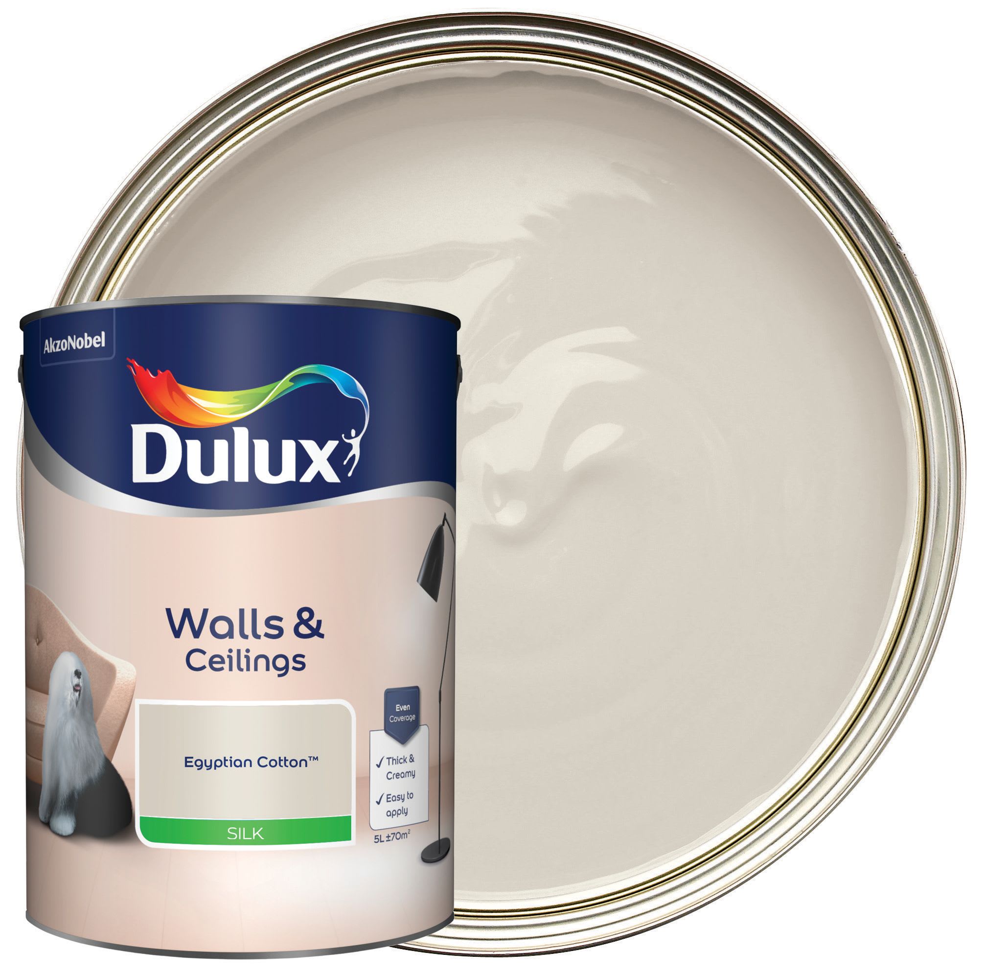 Dulux Silk Emulsion Paint is a smooth and creamy emulsion paint for use on walls and ceilings, giving a delicate shine finish. Egyptian Cotton is a light, sandy neutral with the slightest hint of khaki which gives it a sophisticated edge.