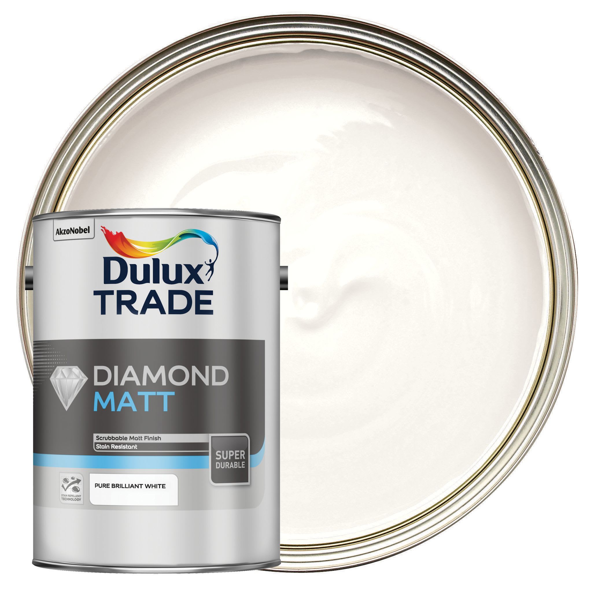 The Dulux Trade Diamond Matt Emulsion Paint is a tough, water-based matt emulsion paint that uses Diamond Technology, making it 10 times tougher than Dulux trade vinyl silk and Dulux trade vinyl matt. Ideal for high traffic areas such as stairwells and hallways, it is resistant to typical household stains and will repeatedly wipe clean without polishing up.