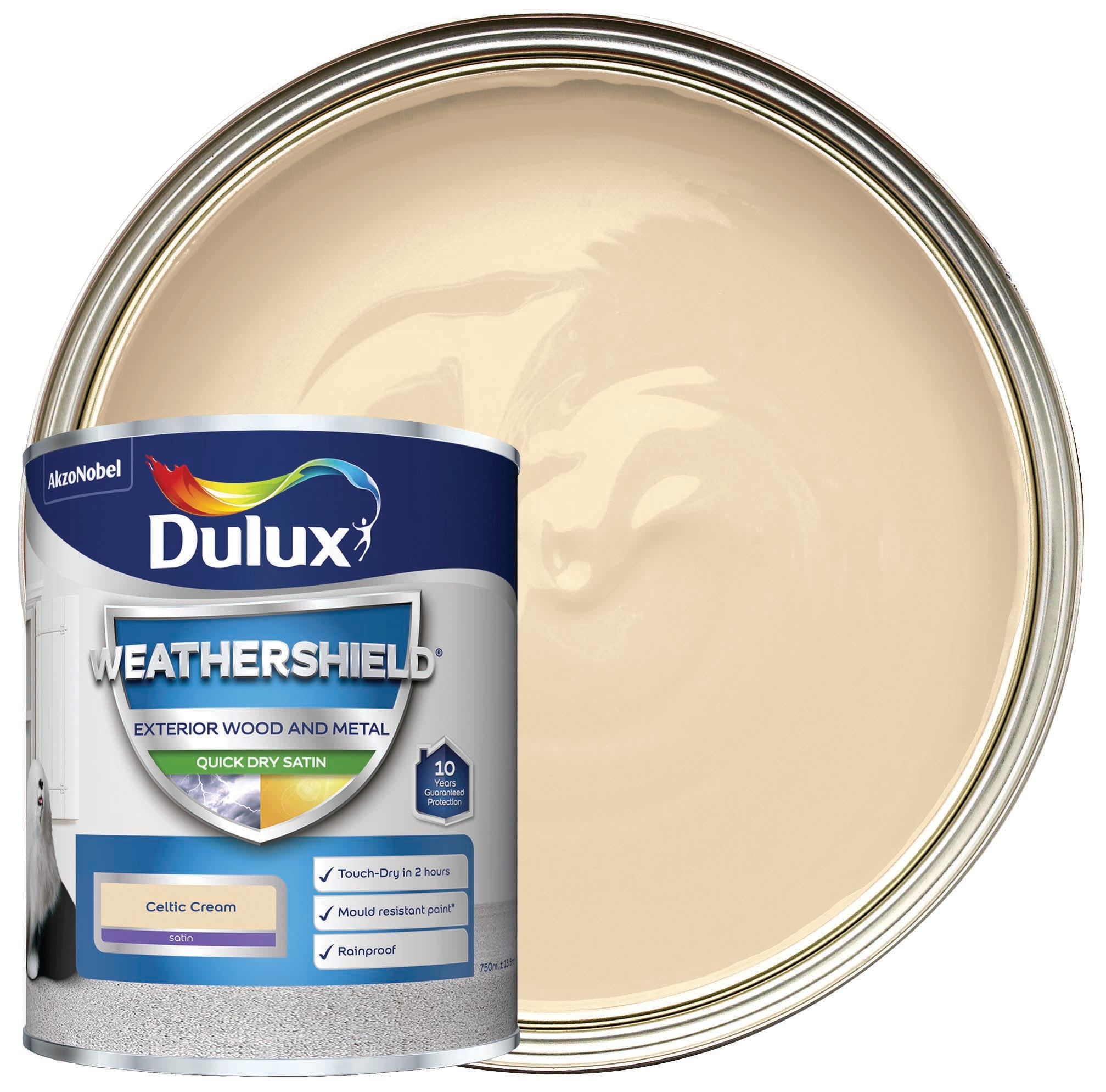 Dulux Weathershield Quick Dry Satin Paint - Celtic Cream - 750ml
