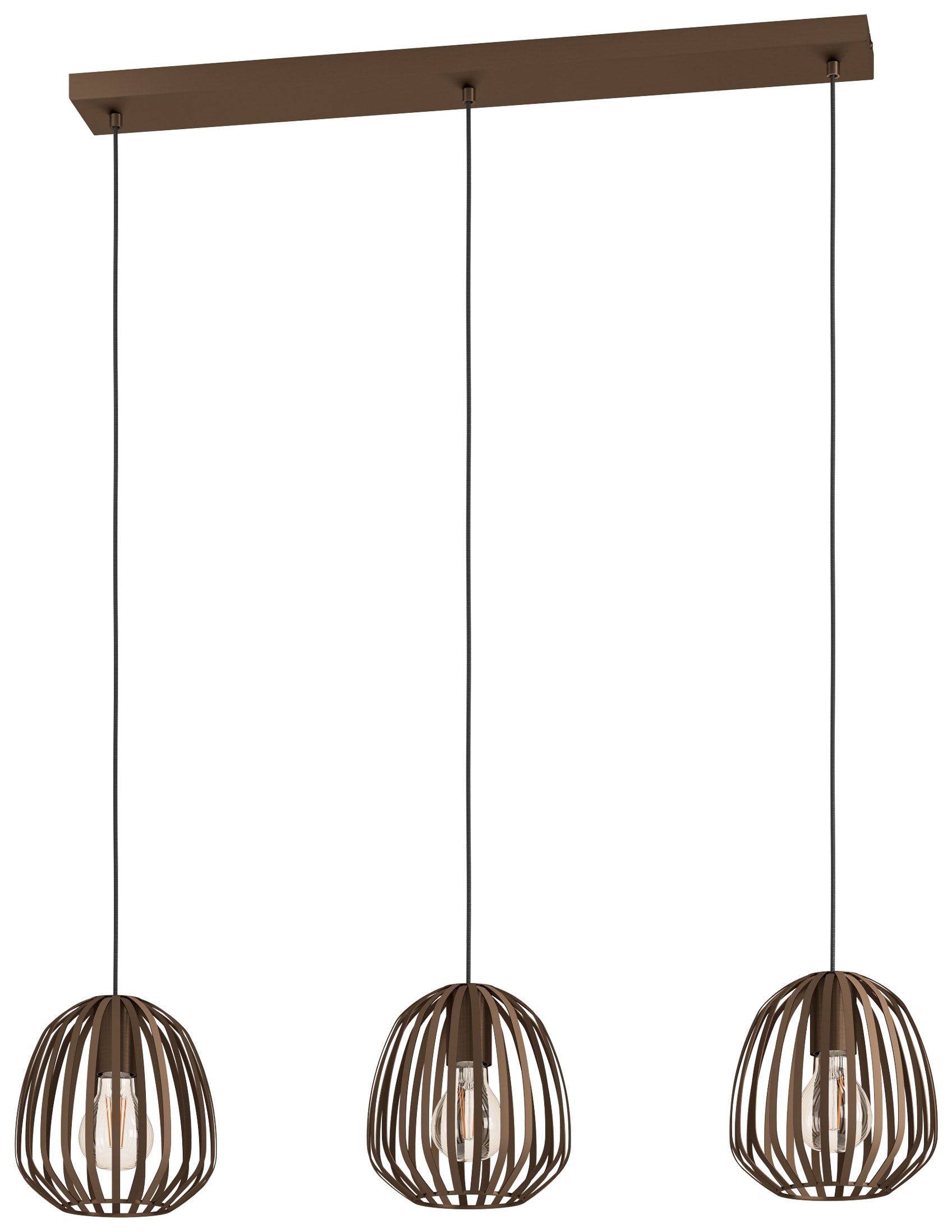 The Eglo Espinal 3-Light Caged Contemporary Pendant Light elevates your dining experience. Crafted from bronze-coloured steel, this stylish fixture measures 90cm in length and 19.5cm in width, with an adjustable height of up to 110cm. It requires three E27 light bulbs (not included) to create a beautiful play of light, making it the perfect addition to your dining table.