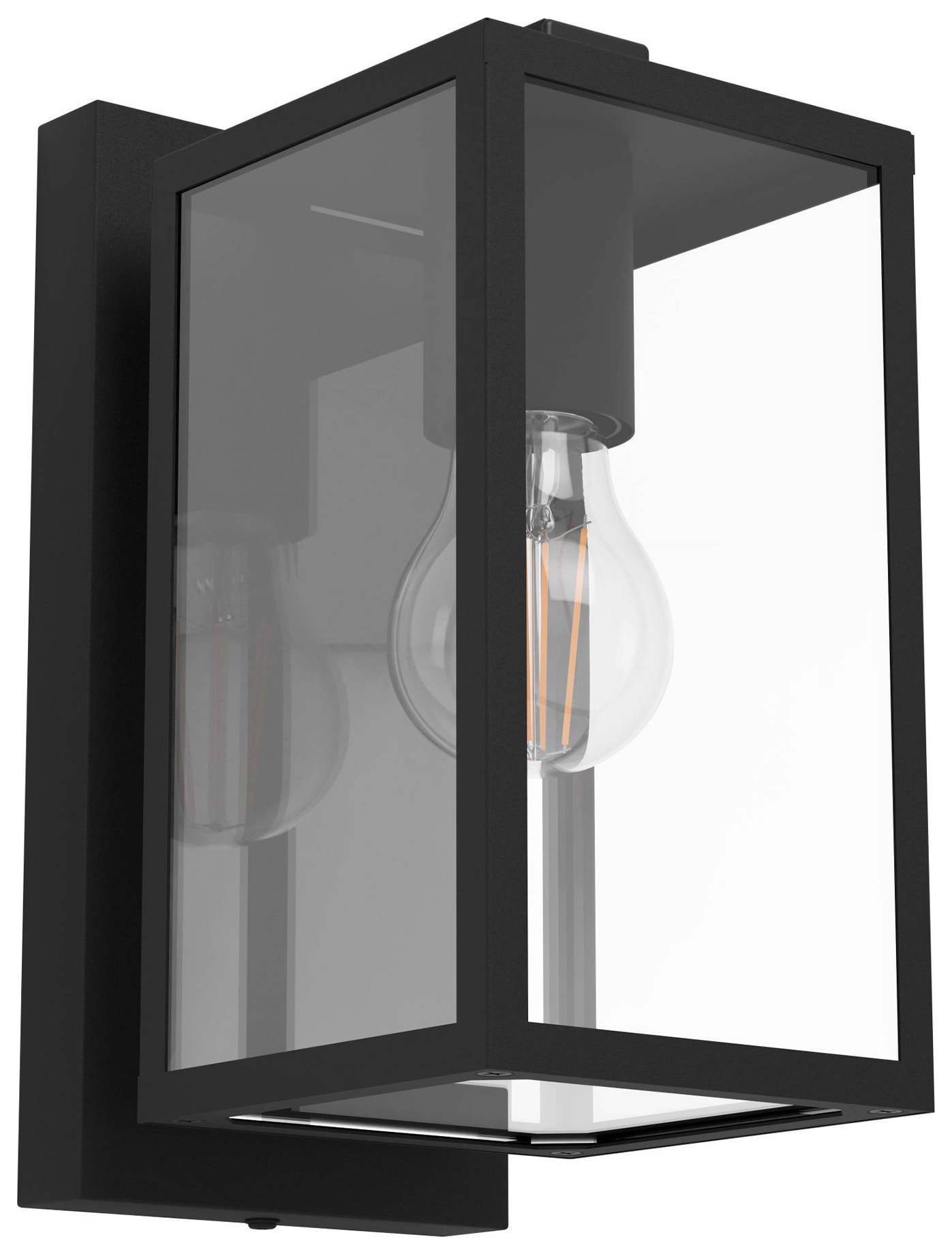 The Eglo Budrone Modern Exterior Wall Light combines the perfect blend of style and functionality. Crafted with care, its sleek black steel frame showcases clear glass panels, allowing a direct view of the lightbulb inside. Plus, it’s reversible, allowing the lightbulb to shine either upwards or downwards. Rain or shine, the Budrone is ready for action with its IP44 rating against spray water. The pictured filament lightbulb isn’t included, the wall light requires 1 x E27 lightbulb, which is not included.