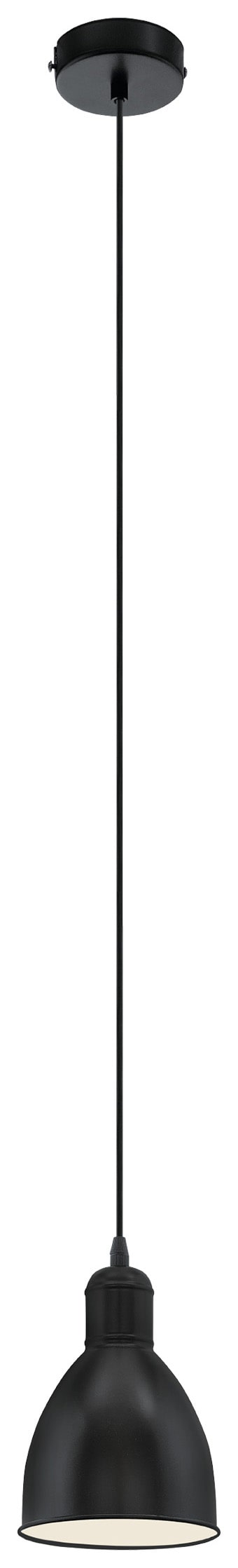 The Eglo Priddy 1-Light Vintage Pendant Light features a round metal lampshade with a black finish and a white inner surface. The product has an industrial-style design and is the perfect finishing touch for modern interiors, providing attractive lighting in the living room or above the dining room table. The product has an E27 lamp holder and requires 1 x E27 lightbulb, which is not included.
