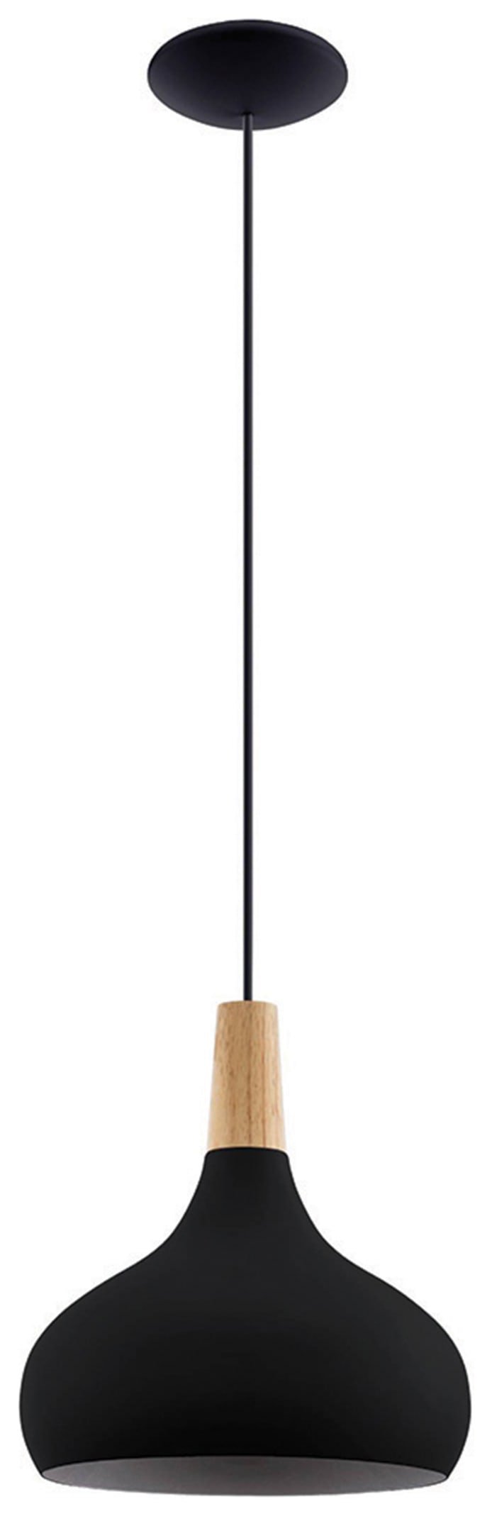 The Eglo Sabinar Metal/Wood Pendant Light features a black metal lampshade suspended on a black cable. The lampshade has a brown wooden element that complements the light’s distinctive charm. With its Scandinavian design and diameter of 28 cm, the pendant light provides stylish lighting in the living or dining room. The product has an E27 lamp holder and requires 1 x E27 lightbulb, which is not included.