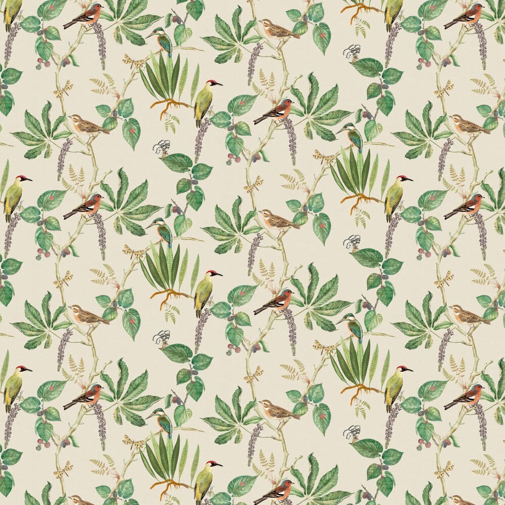 Step into a sanctuary with this exquisite new wallpaper design, Hill Top Garden. Delicate woodland-inspired botanicals dance across a neutral backdrop with vibrant greenery bringing the design to life. Imagine the flutter of butterfly wings, whimsical birds, and the sun dappling through emerald leaves - this wallpaper brings the beauty of the English countryside into your home. Perfect for a variety of rooms, including the bedroom, bathroom and living spaces, let the outdoors in with this design.