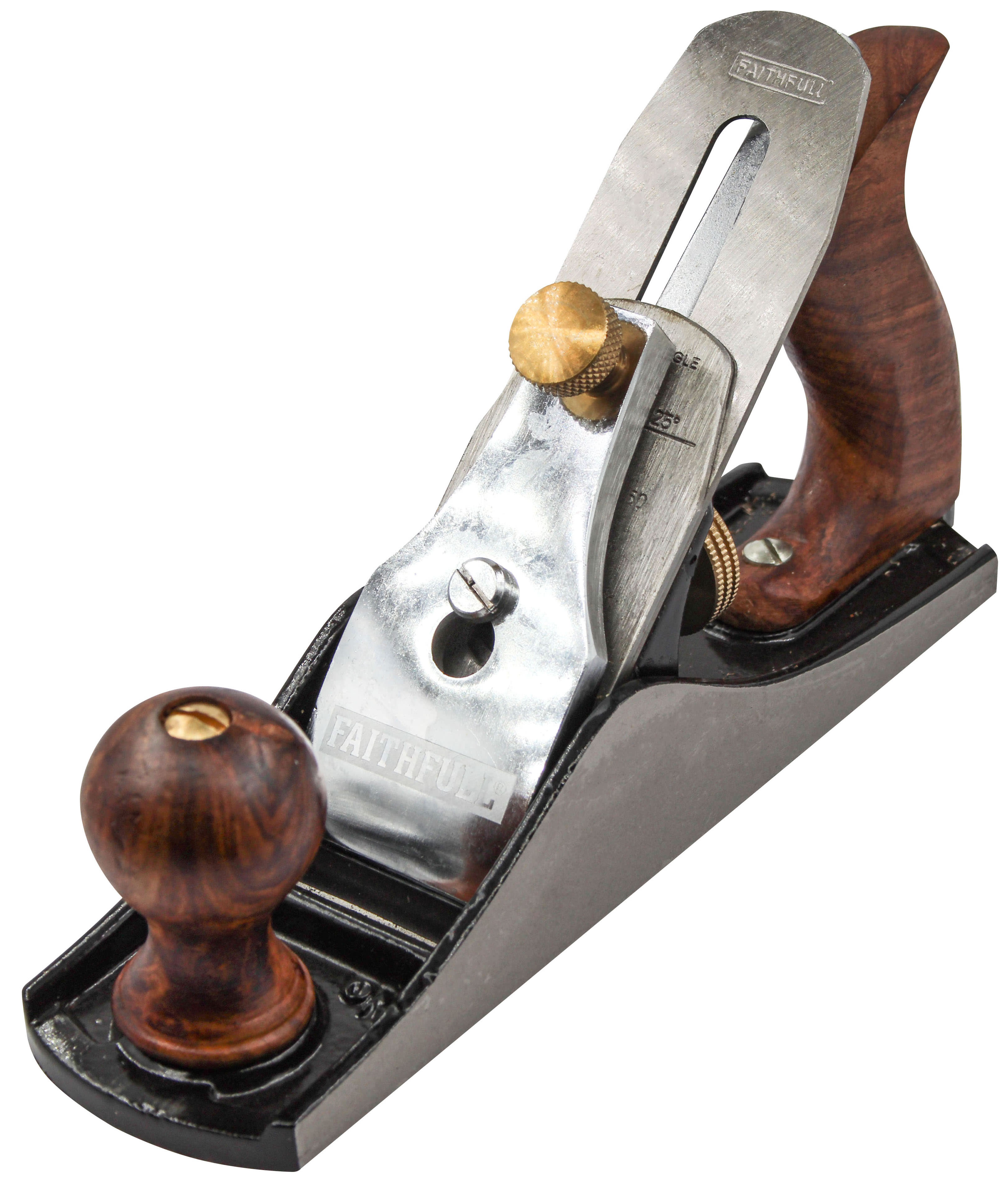 The Faithfull No.4 Smoothing Plane is made with a quality grey cast iron body for strength and stability with precision ground base and sides for flatness and squareness. Machined seatings eliminate movement and blade judder. A lever cap with a brass locking screw secures the blade assembly and enables easy release for sharpening. Hardwood handles and guidance knobs maximise user comfort. A solid brass blade adjustment nut completes the appeal of these traditional tools. Handles are made with FSC® 100% certified wood from well-managed forests. The blade will require honing before use.