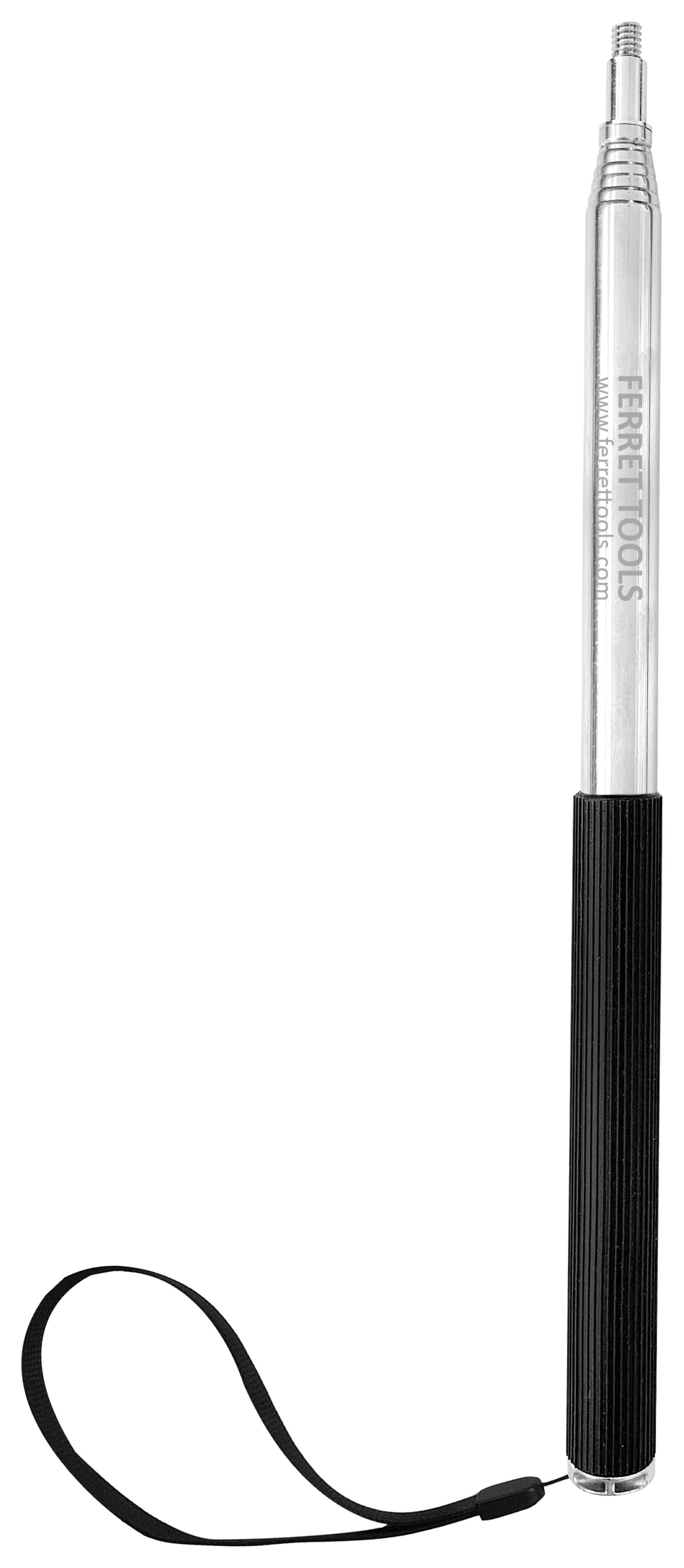 The Ferret Stick mini with grooved design to prevent your camera from twisting and is compatible with all Ferret Cameras. The Ferret Stick Mini is a handy extendable rod made of high-quality materials and is a tough rust resistant lightweight stainless-steel frame and non-slip rubber handle with secure wrist strap at the bottom that offers excellent durability and versatility, both in terms of its length and construction. It extends up to 47” (120cm) with a ¼”-20 UNC thread, which is compatible with all Ferret Tools cameras.