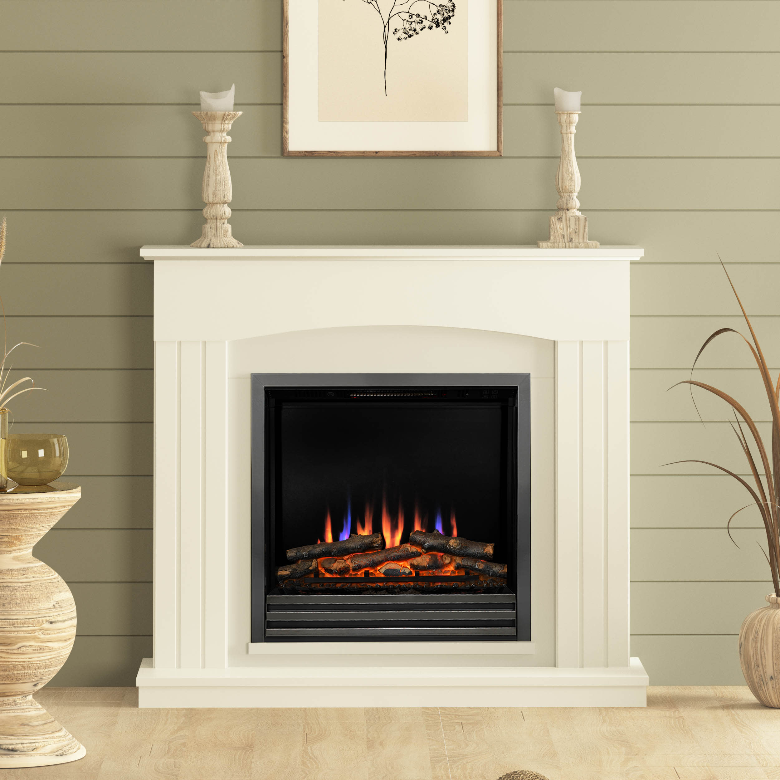 The Linmere from the Flare Range by Be Modern blends traditional art deco styling with bold, sophisticated detailing. Available in Soft White with a black nickel widescreen electric fire, or natural oak veneer with chrome trim, each version features a glowing log bed and realistic flame effect—now enhanced with a refreshed fuel bed and remote control. Its flat-to-wall design makes installation simple, creating an effortless centrepiece for any room.