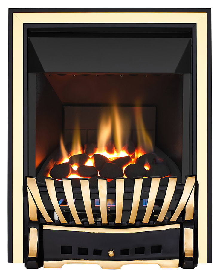 The Focal Point Elegance Antique High Efficiency Gas Fire features an open fronted design which perfectly mimics the look of an authentic traditional fire. Create a warm and inviting atmosphere with its easy to operate system. Suitable for any modern pre-cast flues, pre-fabricated flue systems (class 1 or class 2 with min. 127mm or 5" diameter) or conventional chimneys. This firebox utilises a user friendly rotary control allowing it to ignite, adjust and turn off the flame. Its elegant design portrays a curved profile bringing a modern twist to your home. With an impressive 90% heat efficiency, this highly efficient fire uses less energy than standard inset fires.