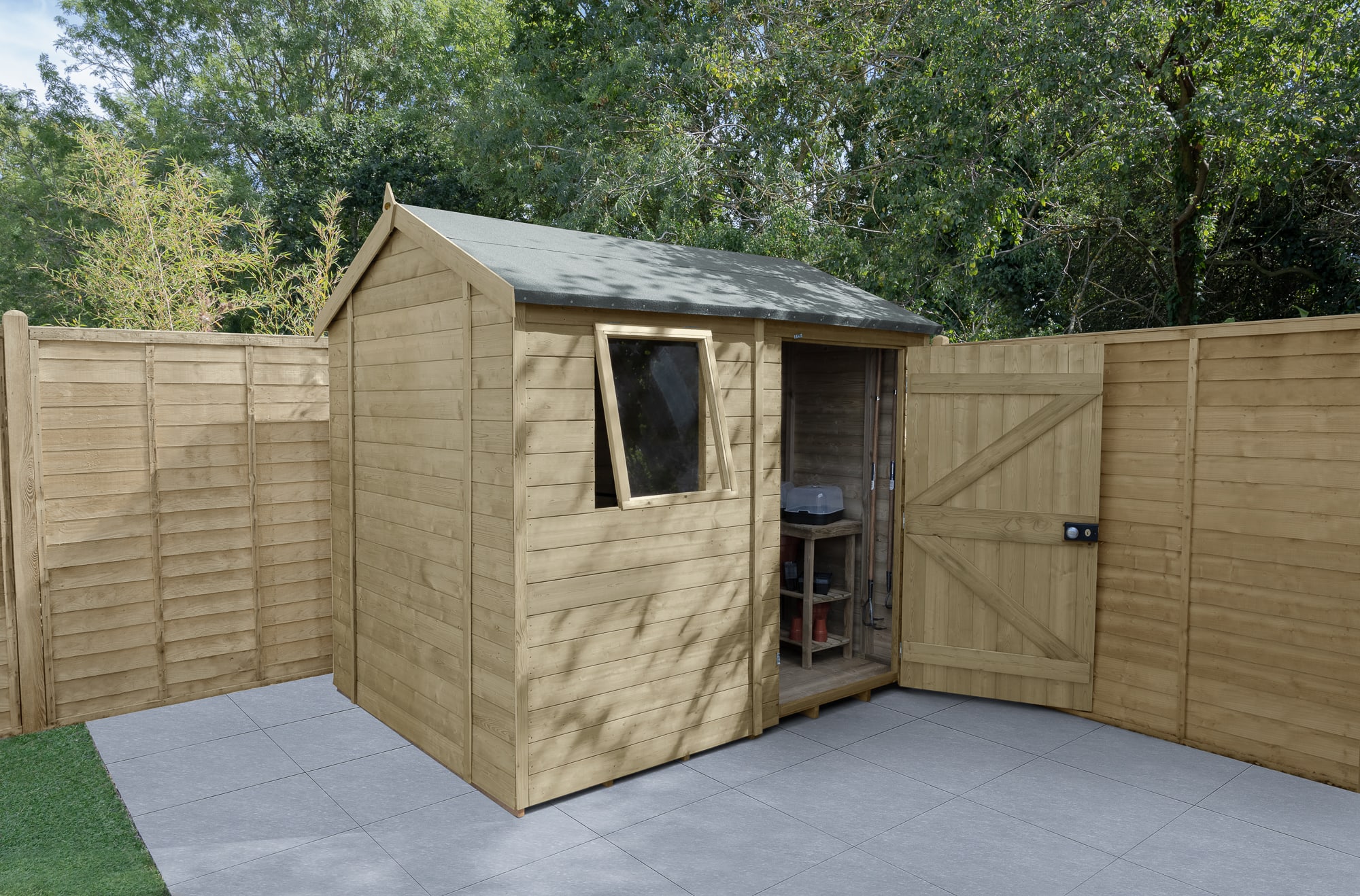The Forest Garden Timberdale Reverse Apex Shed is a premium quality building with a great specification. It offers plenty of space for storing away gardening tools and equipment as well as having room to use as a workshop with a workbench and shelving. packed with high quality features and specifications.