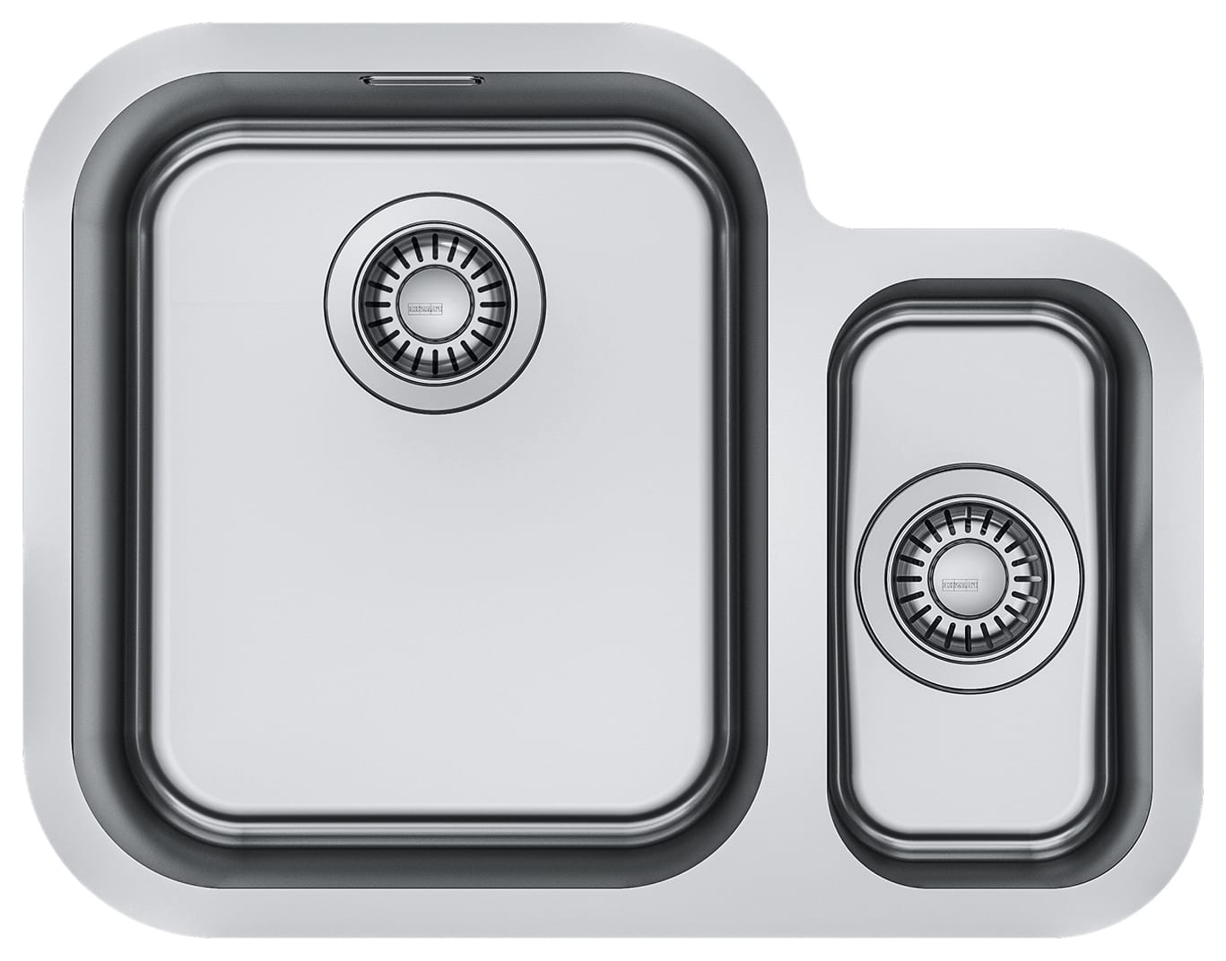 Undermount stainless steel 1.5 bowl sink with sleek curved edging to give any kitchen a more contemporary look. The sink comes complete with a basket strainer waste and patented hygienic overflow. The large bowl measures 341 x 401 x 180mm and the smaller bowl measures 160 x 300 x 200mm.
