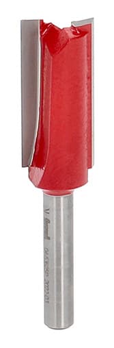 The Freud 1/4" Straight Double Flute Router Bit produces precise and clean cuts and features a Titanium Cobalt Carbide tip for sharpness and durability. It has a non-stick coating to reduce heat and resin build-up, and its anti-kickback design and multi-axis grinding ensure safety and burn-free cutting. It's ideal for cutting worktops.