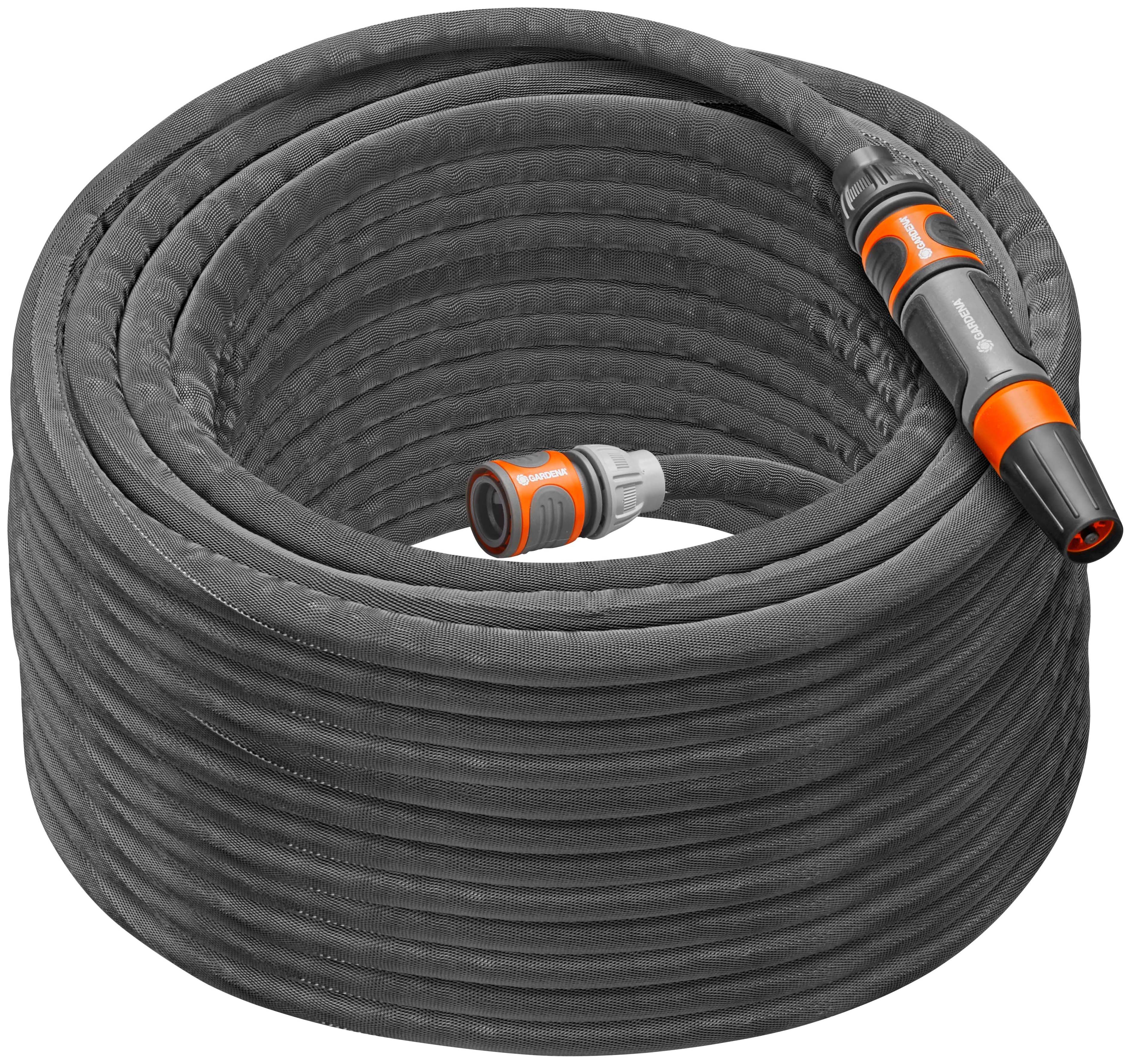 The Gardena Liano Life Hose is perfect for your large garden and is ideal for short and medium duration irrigation. Composed of a flexible PVC inner hose and the innovative outer hose made of resistant textile fabric which ensures its reliable performance. When irrigating the garden or cleaning around the house, the flexible Liano™ Life impresses with its comfortable handling. Thanks to its pleasant feel, it sits well in your hand. It does not kink or tangle when manoeuvring and can be easily guided around obstacles. The low weight of the hose is particularly beneficial for longer use. Thanks to its elasticity, this garden hose can be stored in a space-saving way as well as being stored outdoors, as it is UV and frost proof.