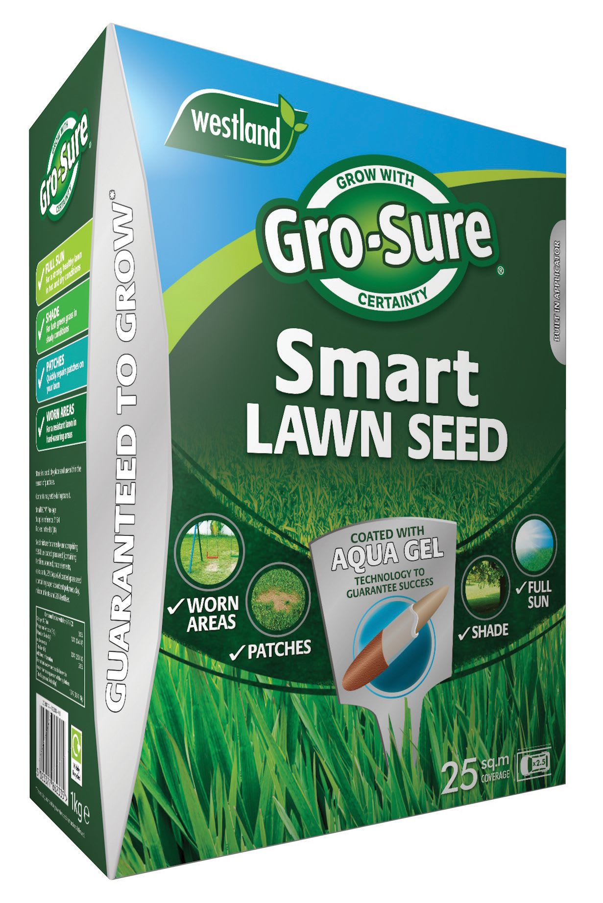 The Gro-Sure Smart Seed Lawn Feed can be grown across a range of challenging conditions including full sun, shade, worn areas and even bare patches. It has a unique lawn seed blend that combines coated seeds with advanced water storing technology, high performance seed varieties and lawn starter feed to deliver a guarantee to grow* promise.