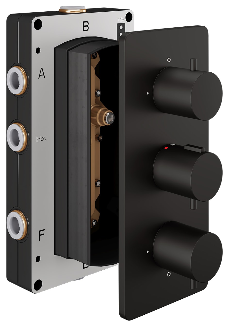 Hadleigh Concealed 3 Outlet Round Thermostatic Shower Valve - Matt Black
