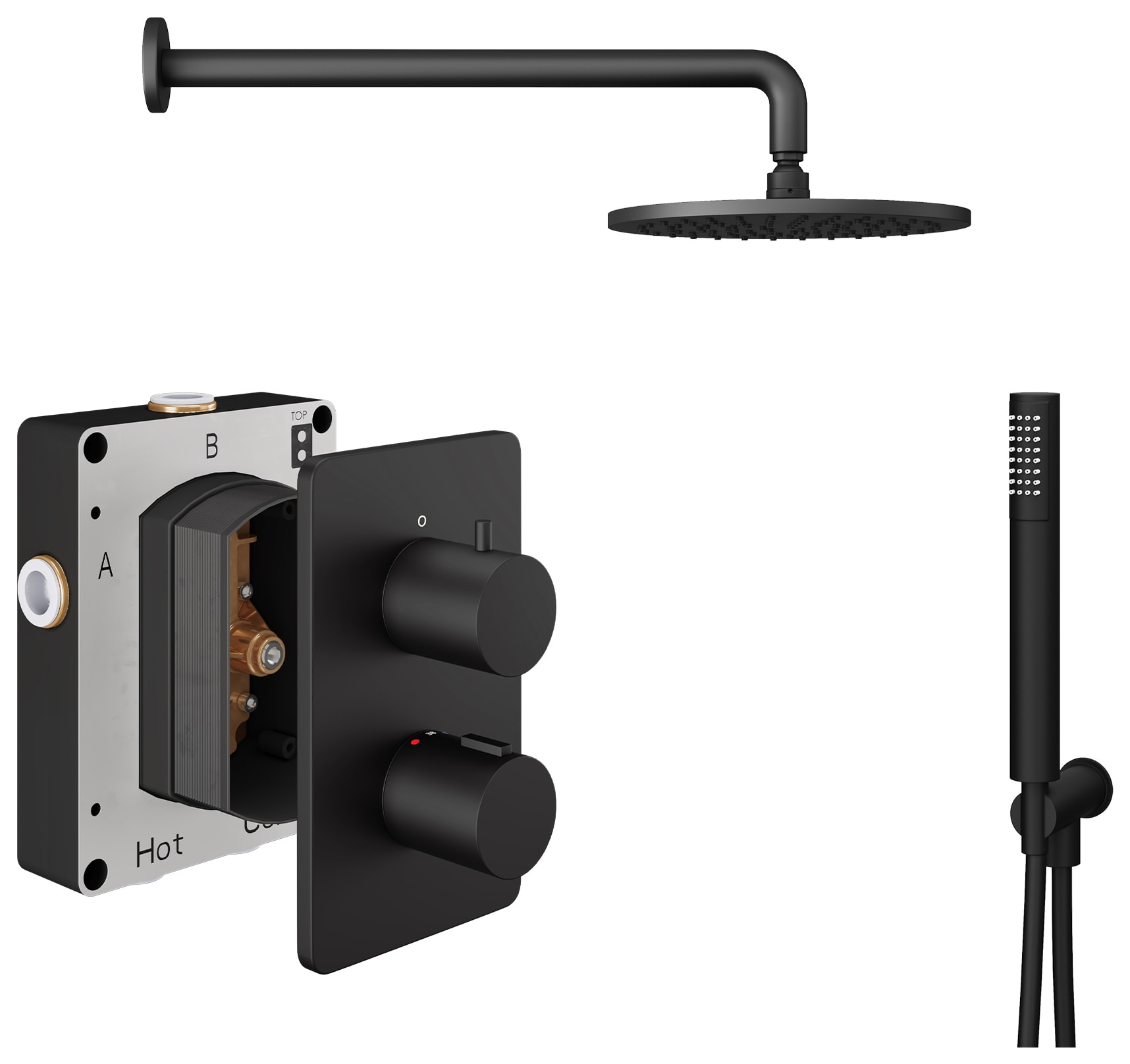 Hadleigh Recessed Dual Control Round Mixer Shower Includes Shower Valve, Shower Head & Riser Rail - Matt Black