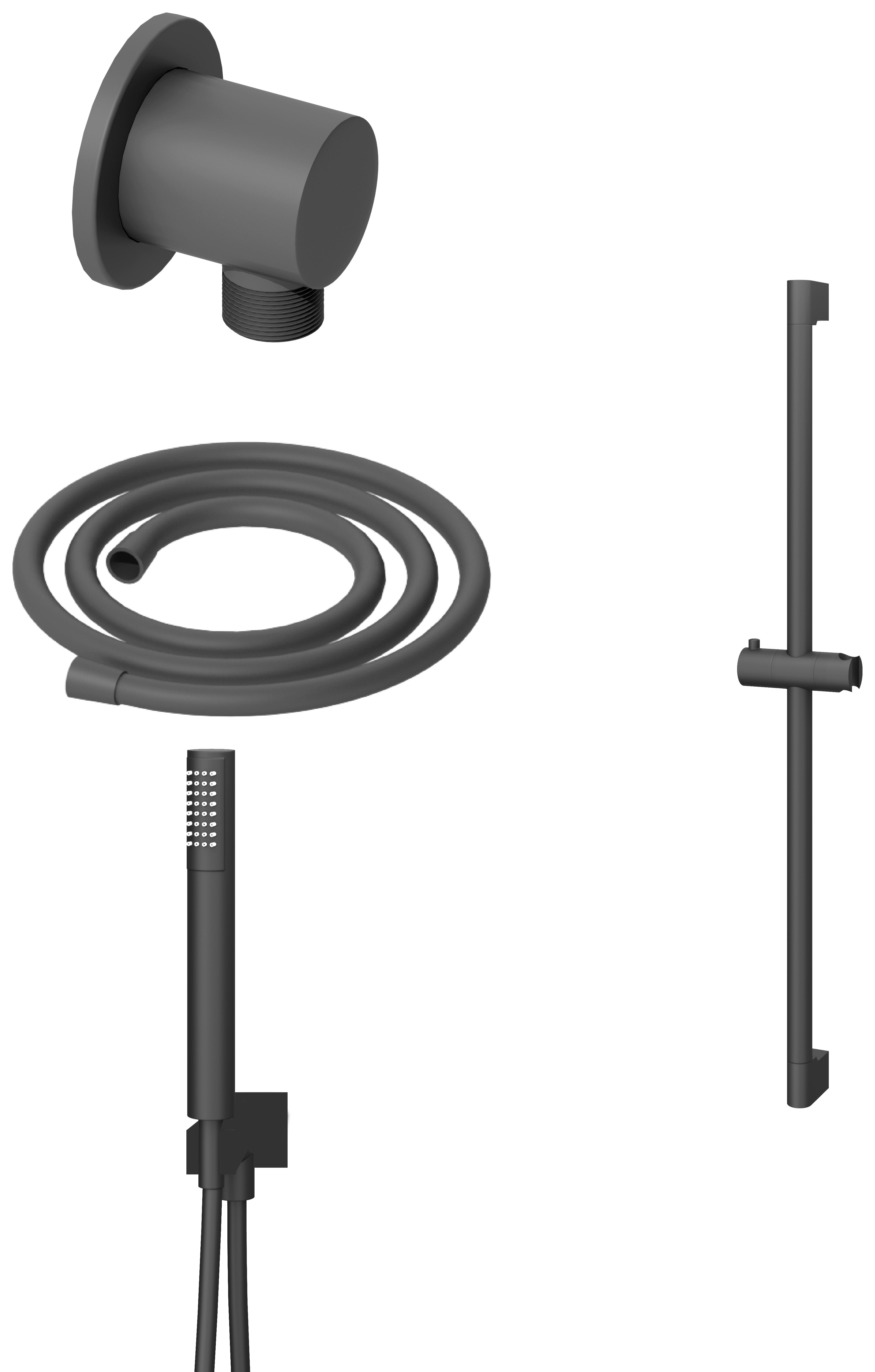 Hadleigh Shower Riser Rail, Wall Outlet, 1.6m Hose & Handset Accessories Kit in Matt Anthracite