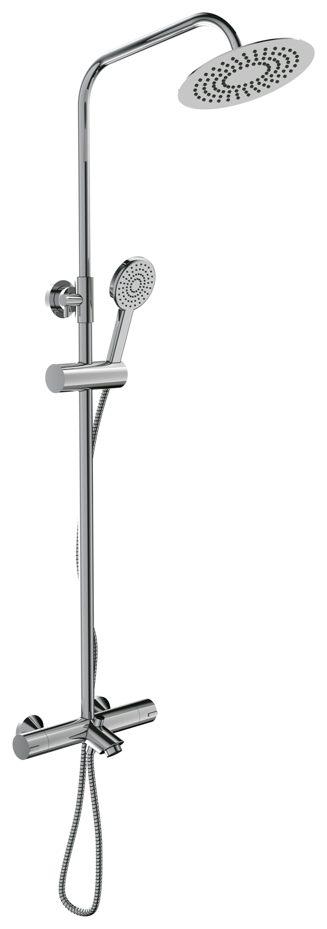 The Hadleigh Dual Outlet Bath Shower Mixer has a stylish wall mounted base with a thermostatic mixing valve which allows a safe and enjoyable experience whilst showering. The ultra slim 200mm rainfall showerhead provides a luxurious showering experience with an additional handheld shower spray.