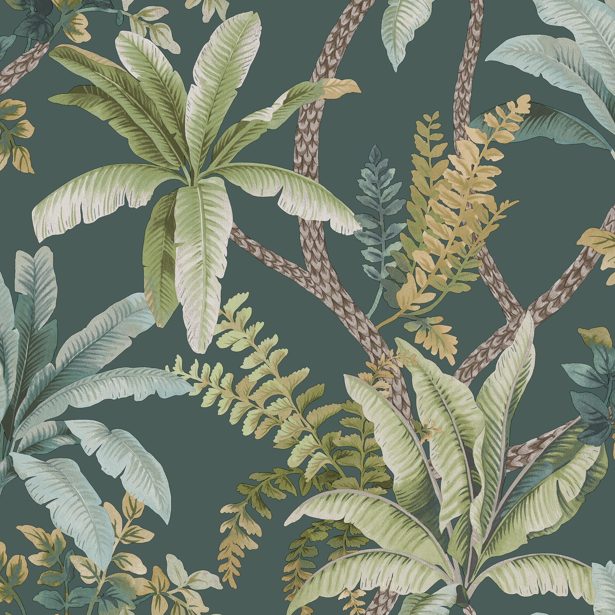 This Trailing Palm Green Teal Wallpaper celebrates the serene tropical oasis of Asia’s archipelagos. Trailing palms and lush foliage invites a touch of paradise into your home and allows you to lose yourself in a sanctuary of enveloping trees, the perfect statement to transform any space.