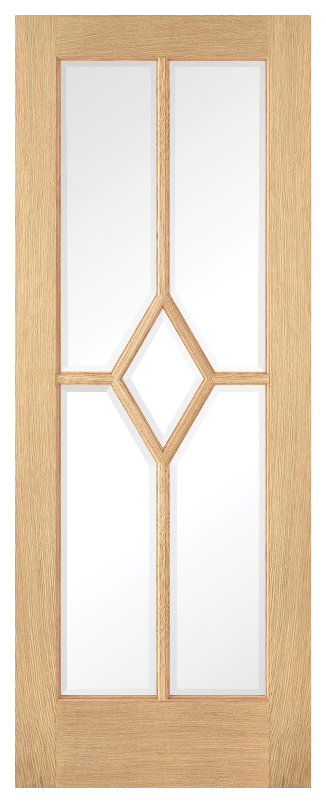 The LPD Internal Reims 5 Lite Pre-Finished Oak Solid Core Door adds a touch of style and flair to the interior of your home. Featuring five clear glazed panels underneath a unique diamond design made from decorative beading, this door is perfect for traditional homes, especially in rooms which may be lacking in natural light.
