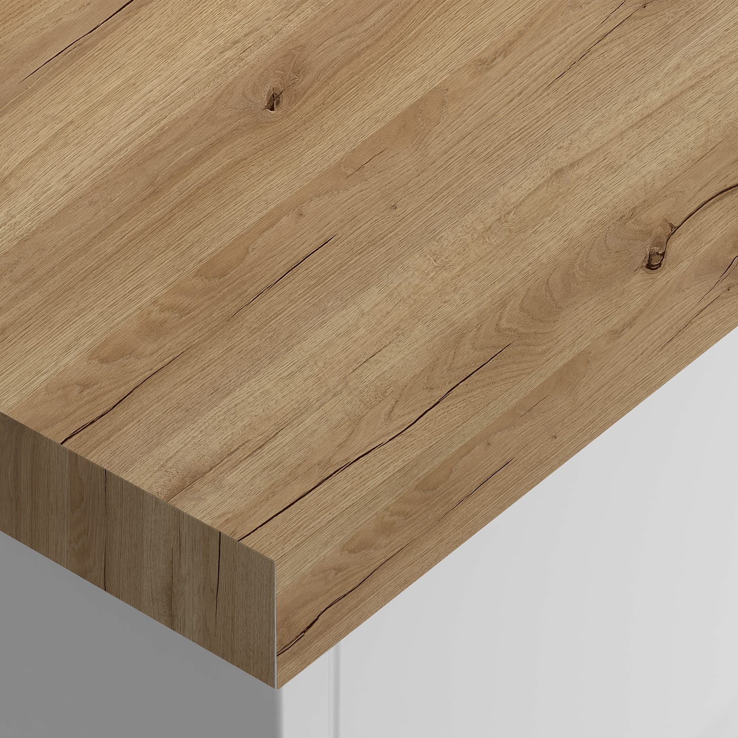 Inspired by the warm, caramel tones of real oak, this easy to install Lundby Oak laminate worktop has a natural looking woodgrain effect, perfect for any kitchen.