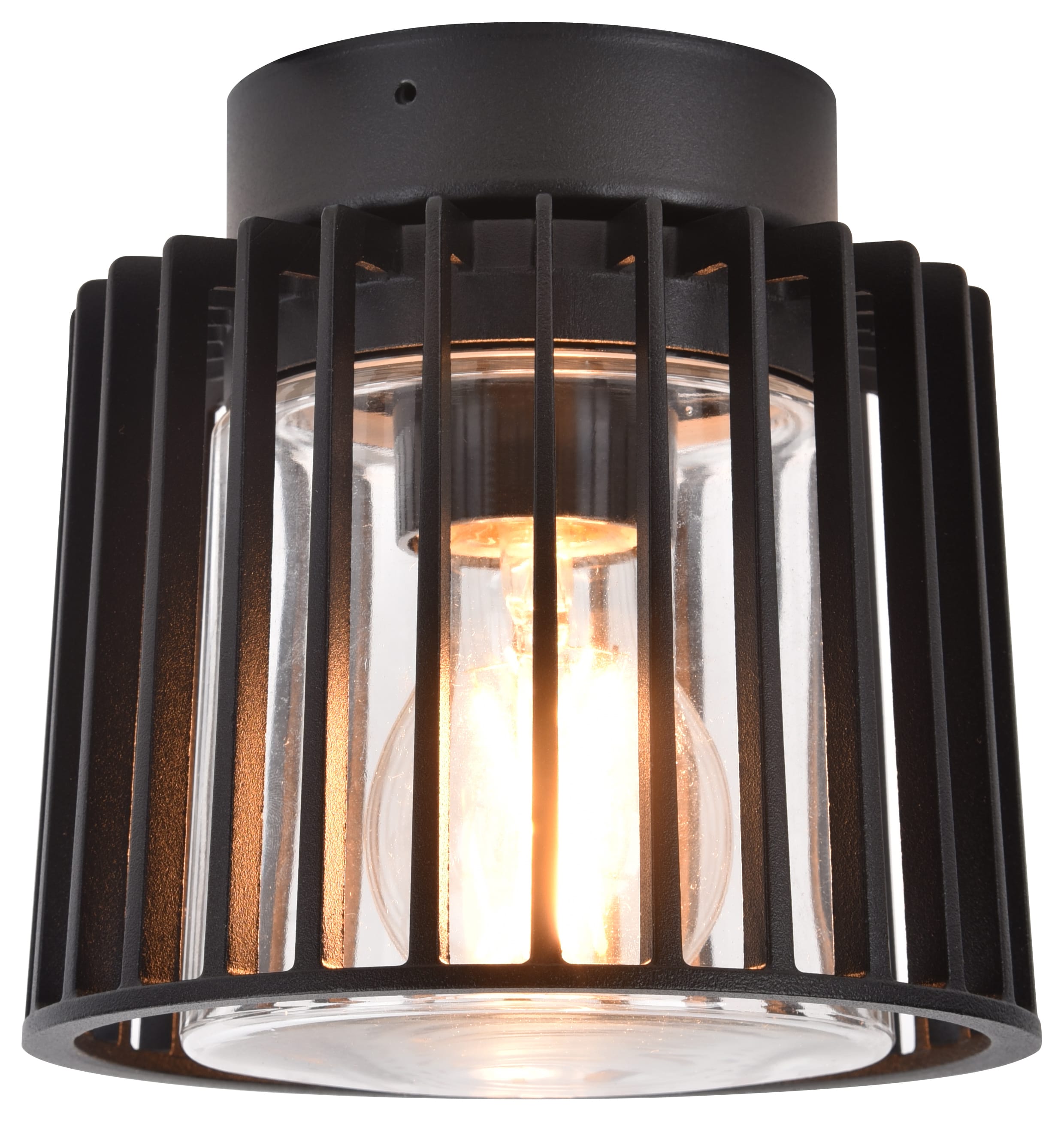 The Lutec Shyne Ceiling Light puts a modern twist on a classic lampshade design and the elegant black finish makes it an ideal outdoor lighting solution to compliment any home and is ideal for porches to create an amazing look on arrival to your property. When paired with a vintage style E27 lightbulb, the slatted shade design creates a unique and attractive lighting effect on the chosen mounting surface around your home or garden. Made from die cast aluminium with a toughened clear glass diffuser, the Shyne is covered by the Lutec 5 year warranty.