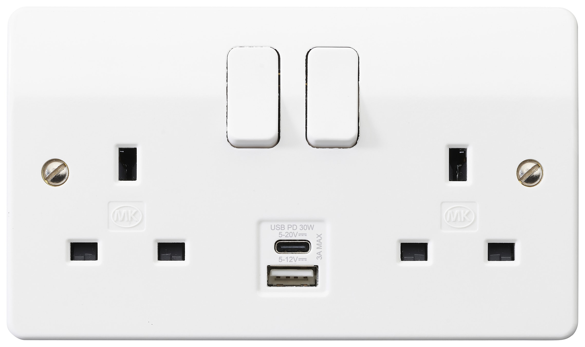 MK Logic Plus 13A Double Switched Socket with Type A&C USB Charger - White