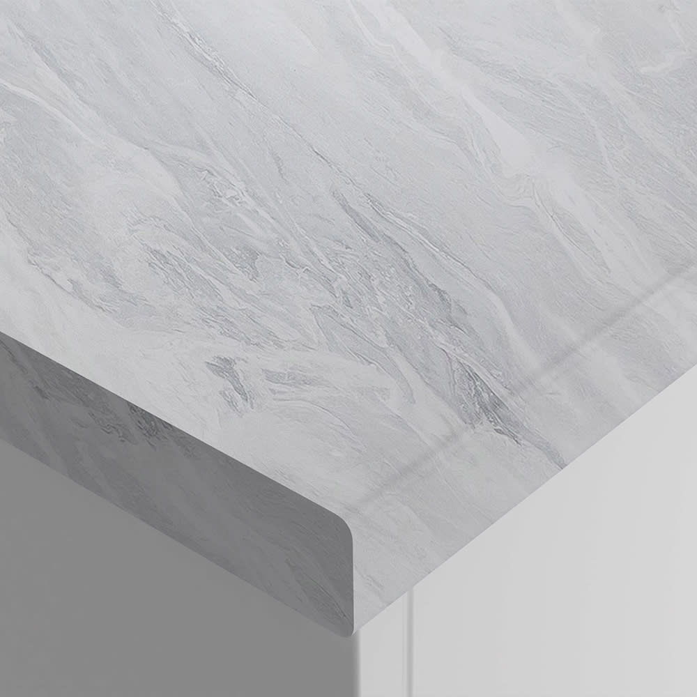Inspired by the beauty of natural stone, the easy to install Marbre Sirocco laminate breakfast bar features subtle grey linear veining to lend an air of luxury to your kitchen.