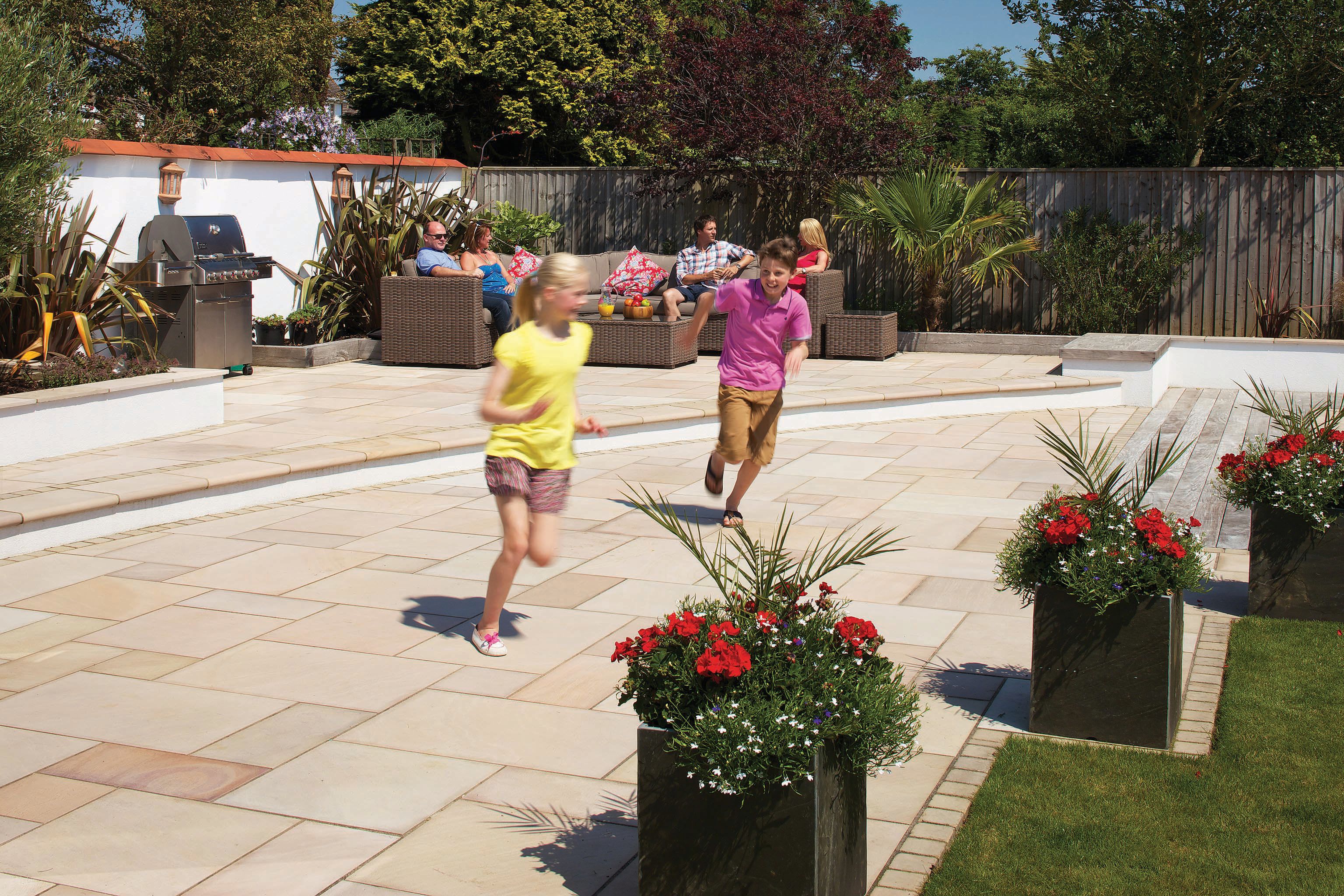 Marshalls Fairstone King Size is a large plan size, sandstone paving slab manufactured from ethically sourced sandstone. The stone is hand selected to ensure colour and quality consistency. It is 30mm thick and precision sawn to ensure dimensional accuracy. Marshalls source all their Fairstone Sandstone from Kota in India, as part of their ethical trading initiative. Fairstone Sandstone is one of the most durable and hard wearing Sandstone products available.