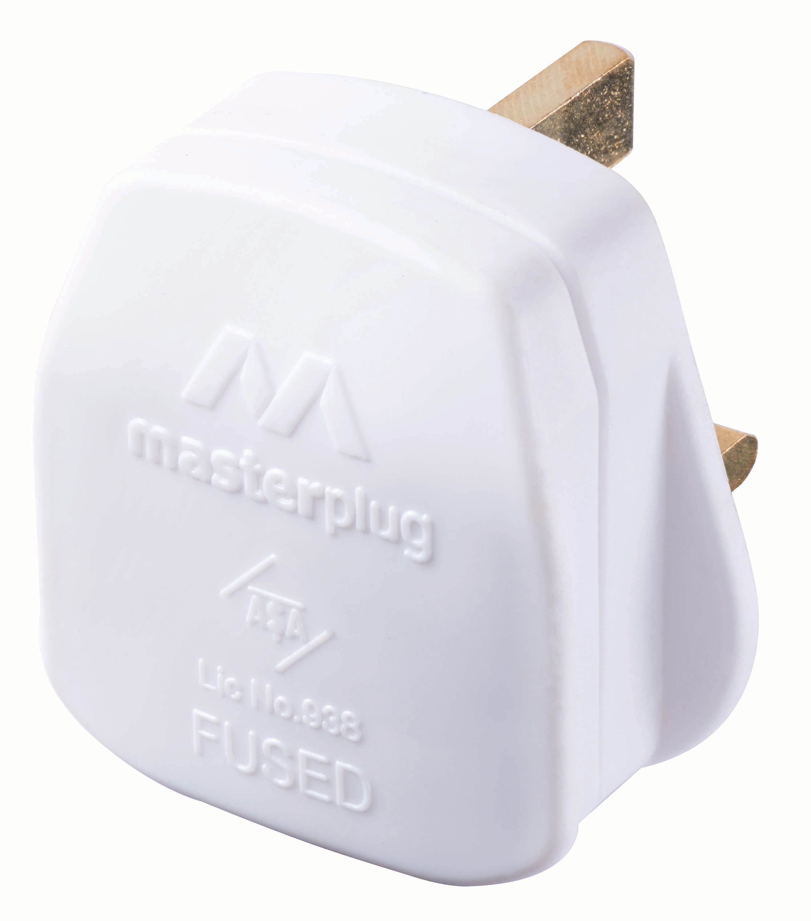 The Masterplug 3 Pin 3A Rewireable Design Fused UK Plug Socket - White is a high-performance 3A plug by Masterplug is completely rewireable. Enhanced safety and security features include a durable build, sleeved pins and brass slotted screws. User-friendly with easy-to-grip grooves makes this plug a dependable power solution for safety, convenience, and reliability.