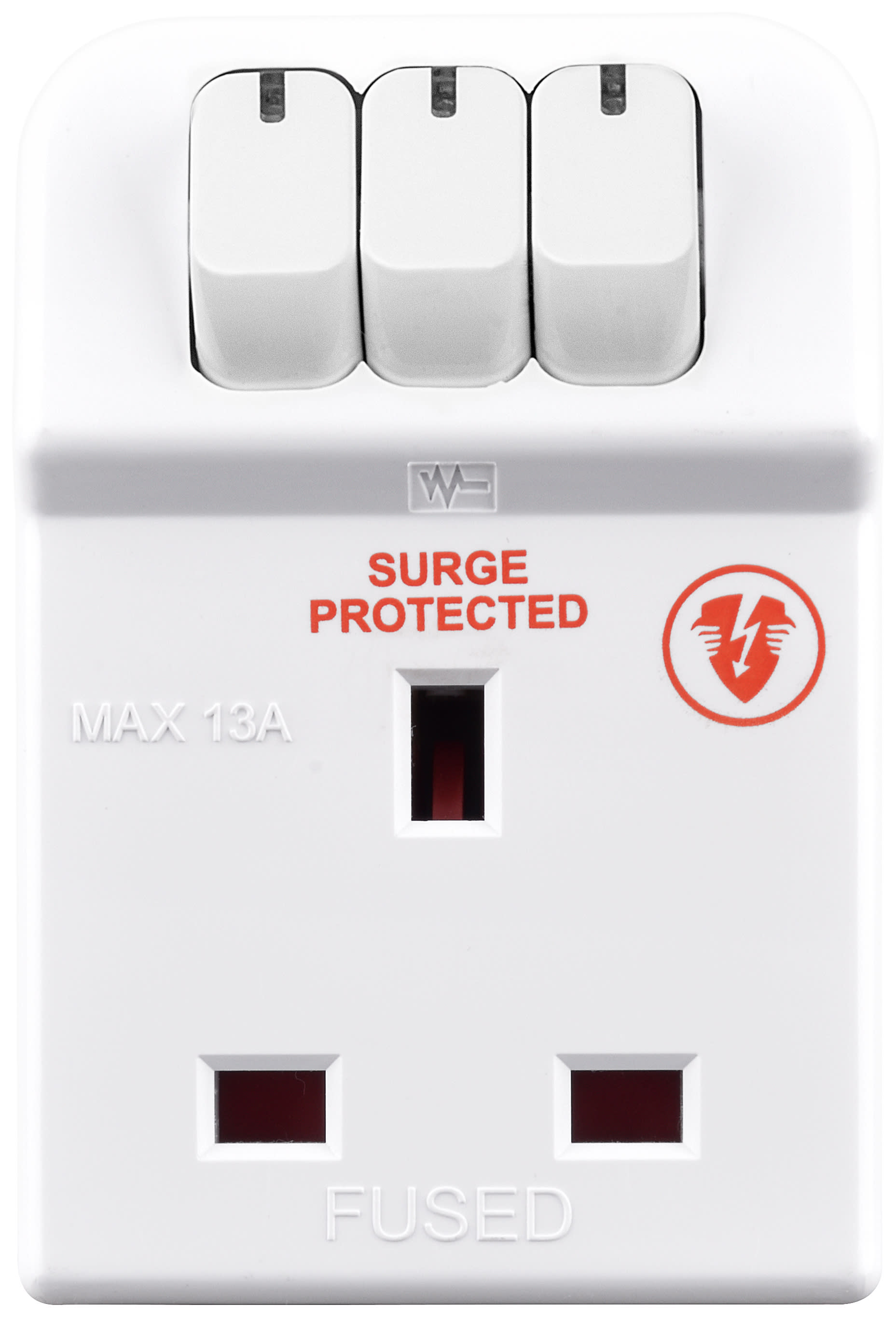 Masterplug 3 Socket Individually Switched Adaptor & Surge Protection Adaptor - White