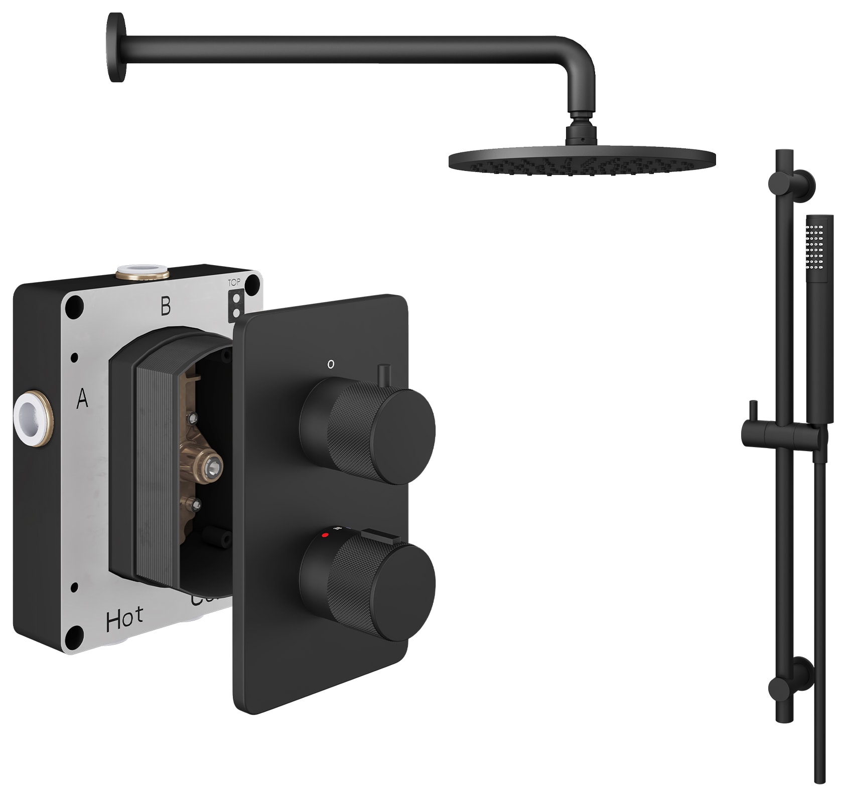 Melbury Pro Dual Control Round Mixer Shower includes Shower Valve, Shower Head & Riser Rail - Matt Black