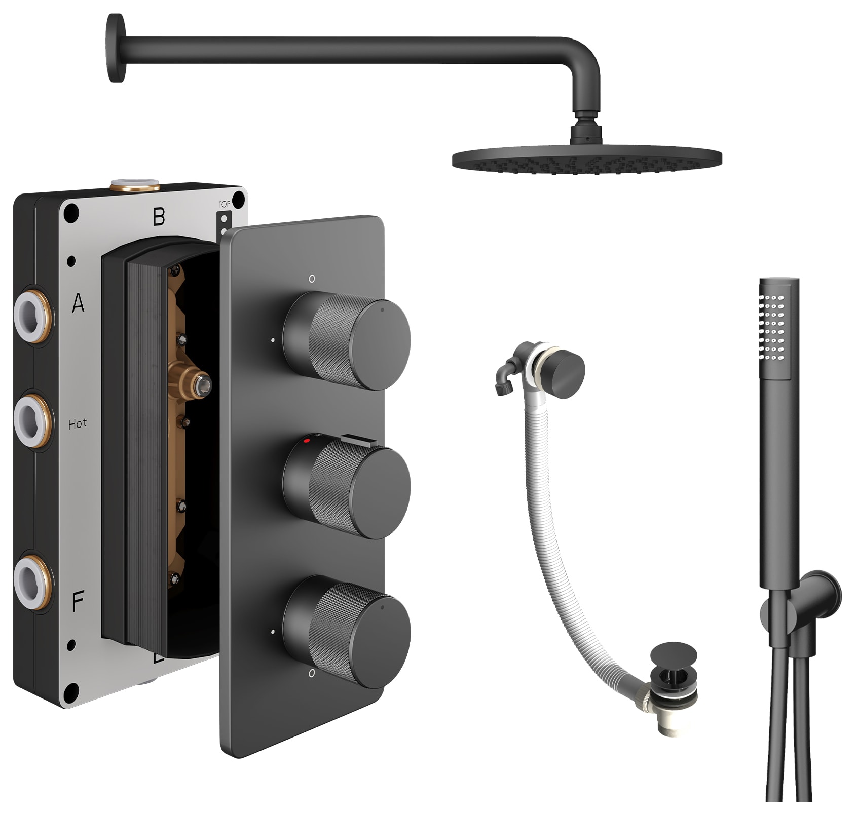 Melbury Pro Recessed 3 Outlet Round Mixer Shower Includes Shower Valve, Shower Head, Shower Handset & Bath Waste - Matt Anthracite