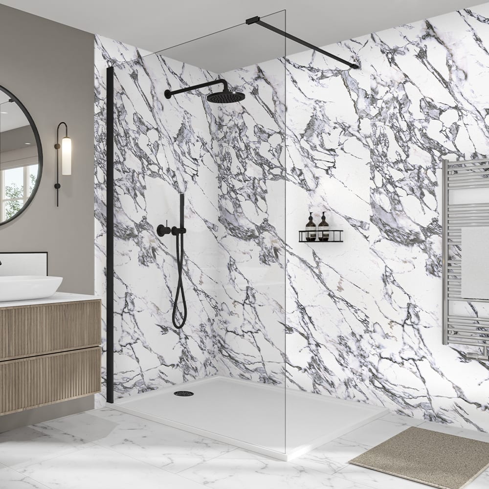 Marmo Migliore from the mermaid elite collection. As elite panels are made using our unique waterproof core, trims are not required. This means you can create a smooth, uniform, seamless finish throughout your bathroom.