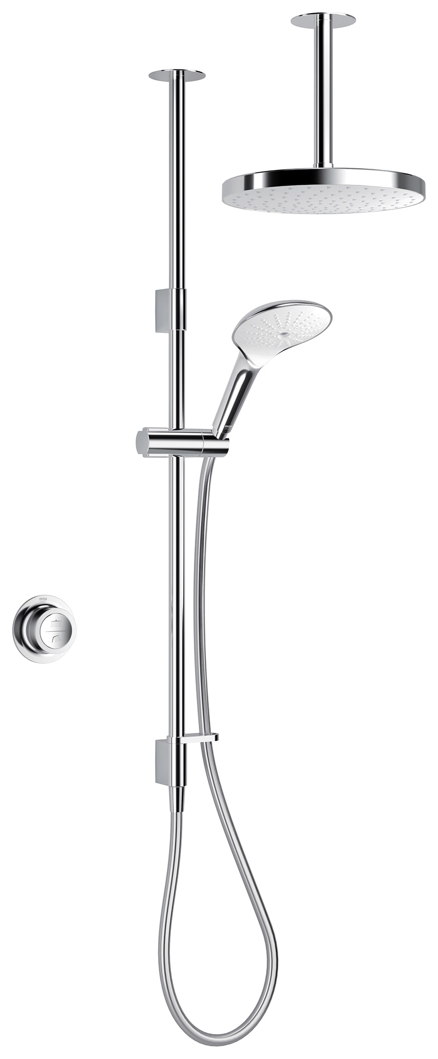 Mira Mode Dual Outlet Gravity Pumped Ceiling Fed Digital Mixer Shower - Chrome