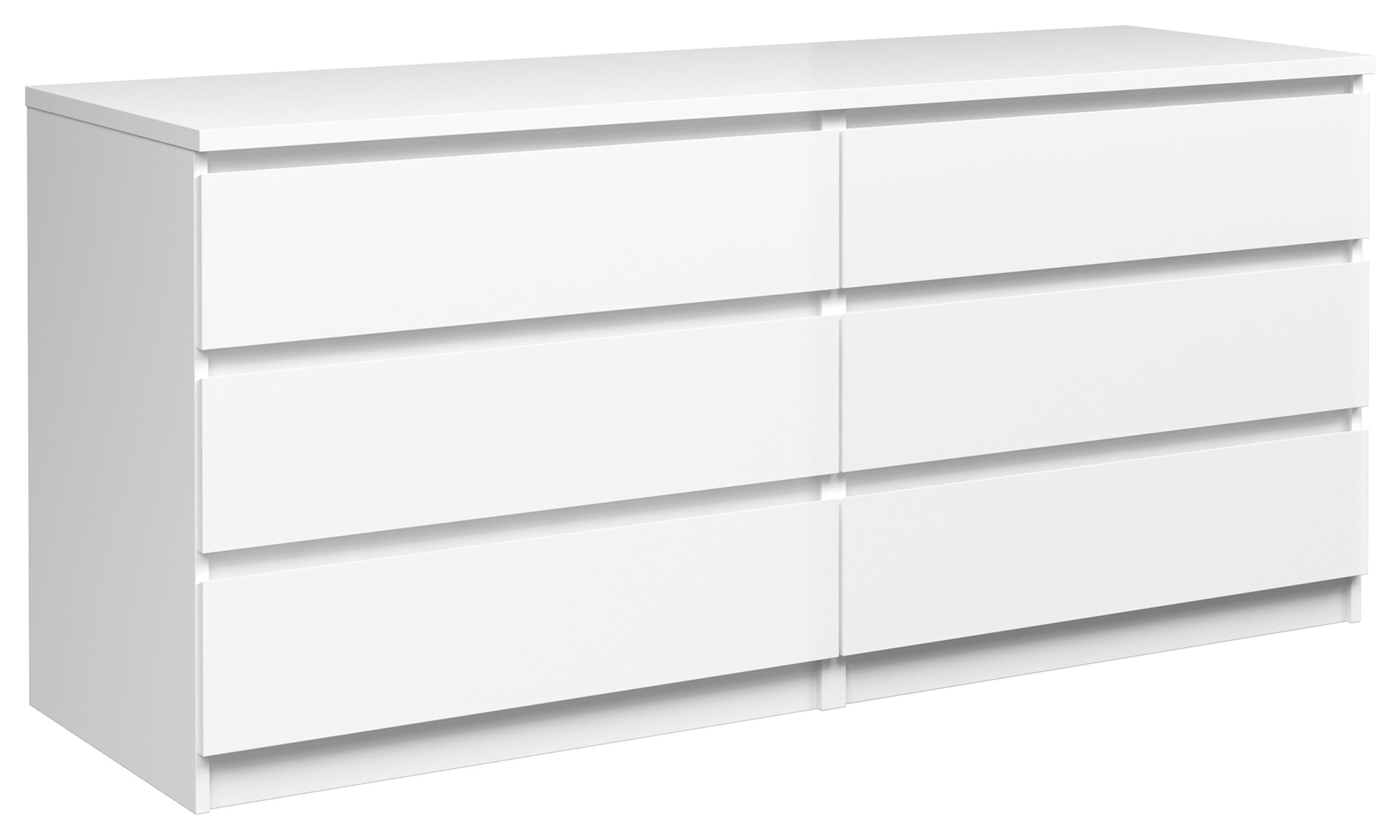 The Naia Wide Chest features six spacious drawers, arranged in two columns of three, offering ample room for clothing, linens, and personal items. Constructed with high-quality materials, it guarantees durability and long-lasting use. The drawers glide smoothly and quietly on metal runners, ensuring effortless operation.