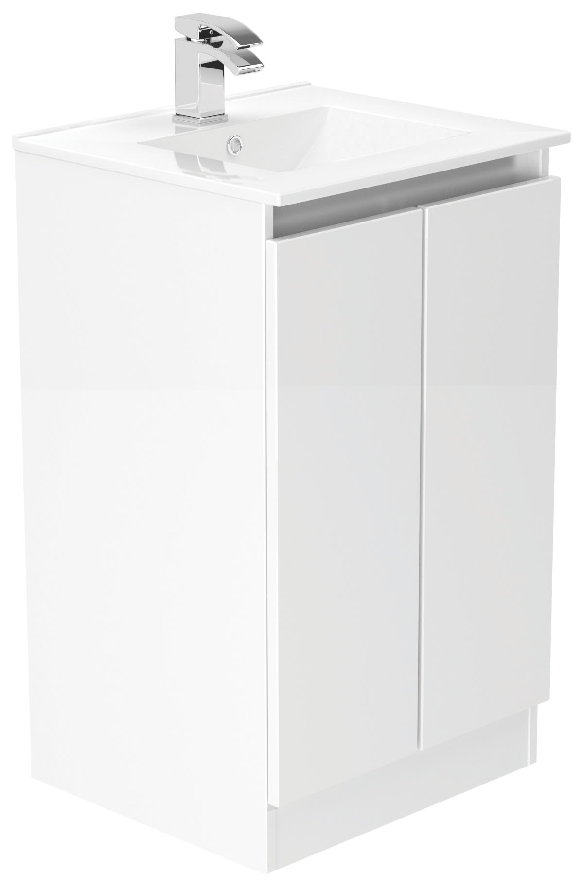 Introducing our stunning double-door floor standing basin unit. With its contemporary design and sleek White Gloss finish, it effortlessly complements any modern bathroom, creating a sumptuous feel. The soft-close doors ensure an ultra-quiet closure. This unit is supplied with a ceramic basin, combining style and functionality. Crafted with exceptional quality in the UK, it is delivered directly by the manufacturer within just 3 days.