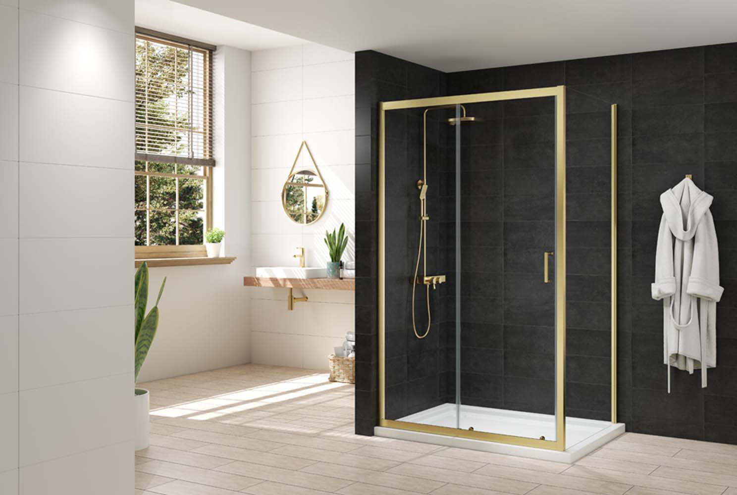 Nexa By MERLYN 6mm Framed Brushed Brass Side Panel Only - 1900 x 1000mm