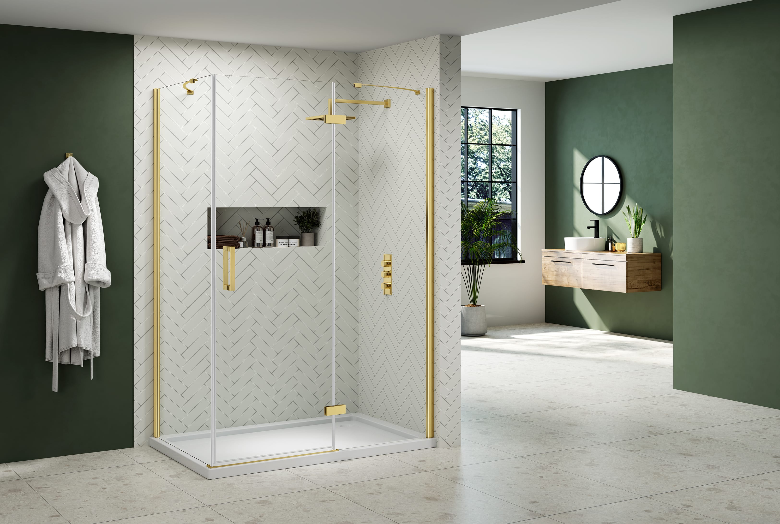Nexa by MERLYN 8mm Brushed Brass Frameless Inline Hinge Door Only for Side Panel Setting - 900mm
