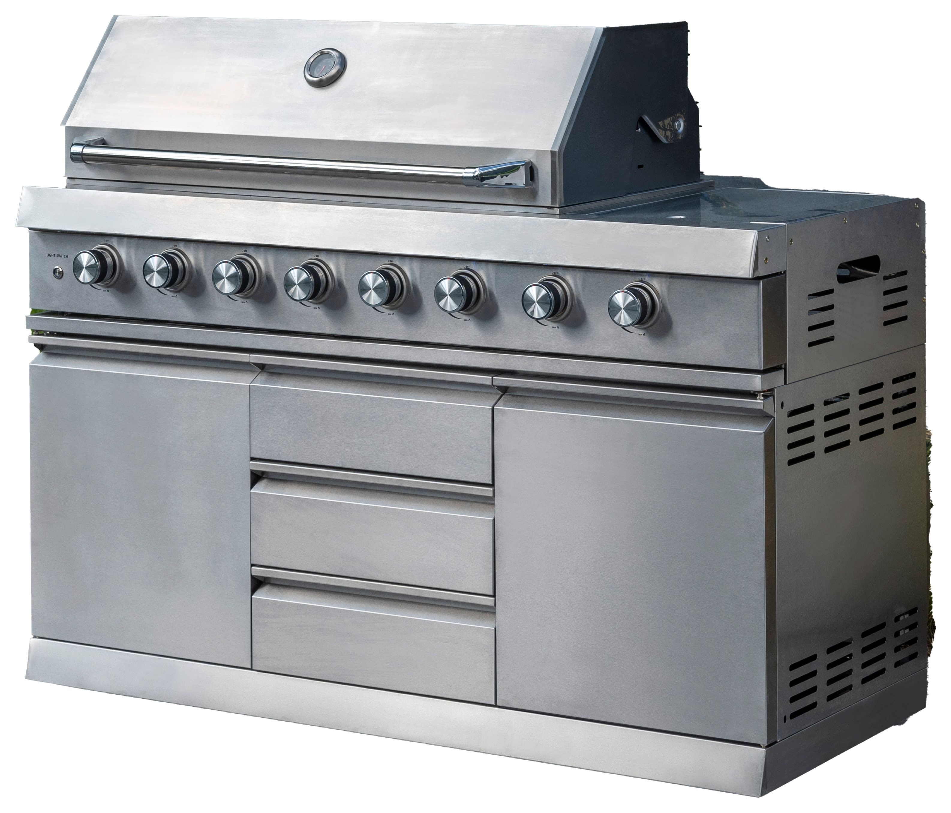 Transform your outdoor space with the luxurious Absolute range. Impress family and friends with the interior lighting and LED lit controls. Featuring 6 x 3.9kw stainless steel burners, a 96 x 46cm cast iron cooking area and a clean and professional finish. Additional storage can be found in the cupboards and drawers, and you won't ever be short on grilling power with a handy 3.6kw side burner and 4.5kw back burner. Plus, the glass lid panel means you can keep a close eye on your delicious grills.