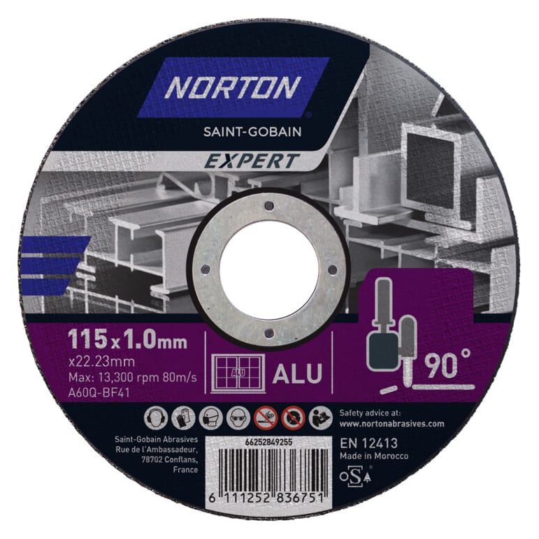 The Norton Expert Aluminium Cutting Disc is designed for cutting aluminium and other non-ferrous metals including copper, brass and bronze. These discs don’t clog when cutting pipes, profiles, sheets and much more.
