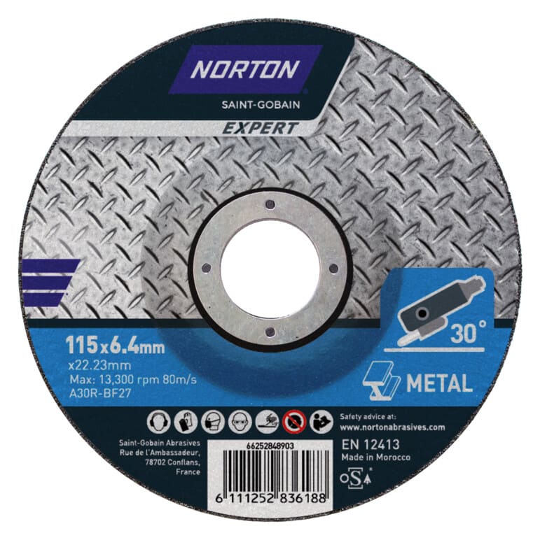 The Norton Expert Steel & Inox Cutting Disc 115 x 1 x 22.23mm is suitable for battery powered grinders. The disc is of professional quality and is designed to maximise the battery life of cordless grinders, thanks to its thinner profile. It provides excellent cutting and grinding performance on steel and inox.