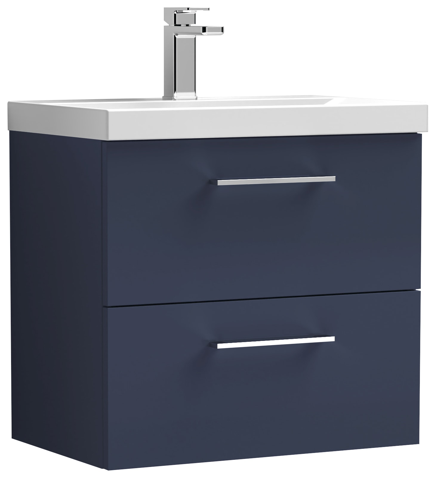 Nuie Arno Midnight Blue Wall Hung 2 Drawer Vanity Unit & Basin - 579 x 610mm