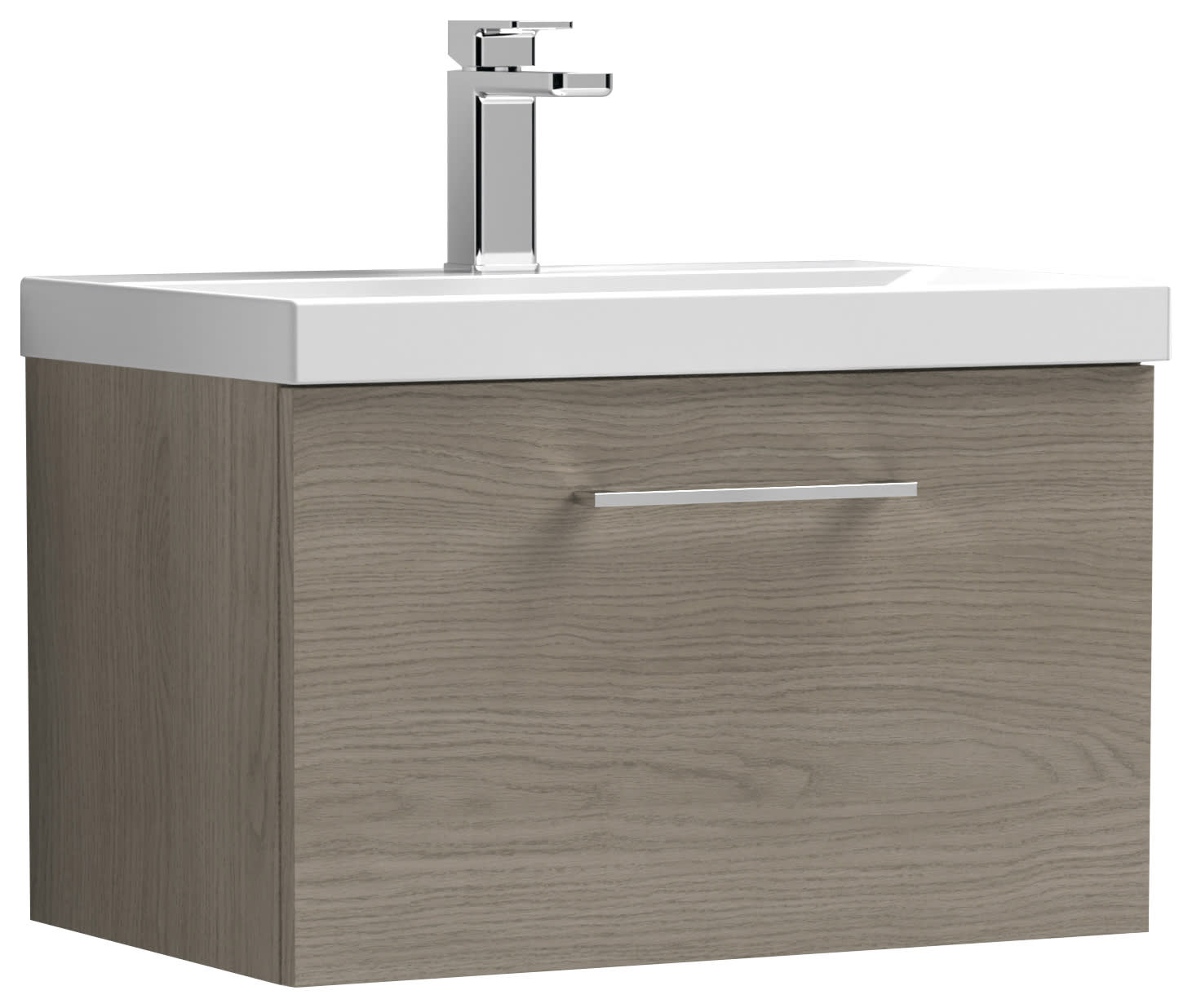 Nuie Arno Solace Oak Wall Hung 1 Drawer Vanity Unit & Basin - 390 x 610mm