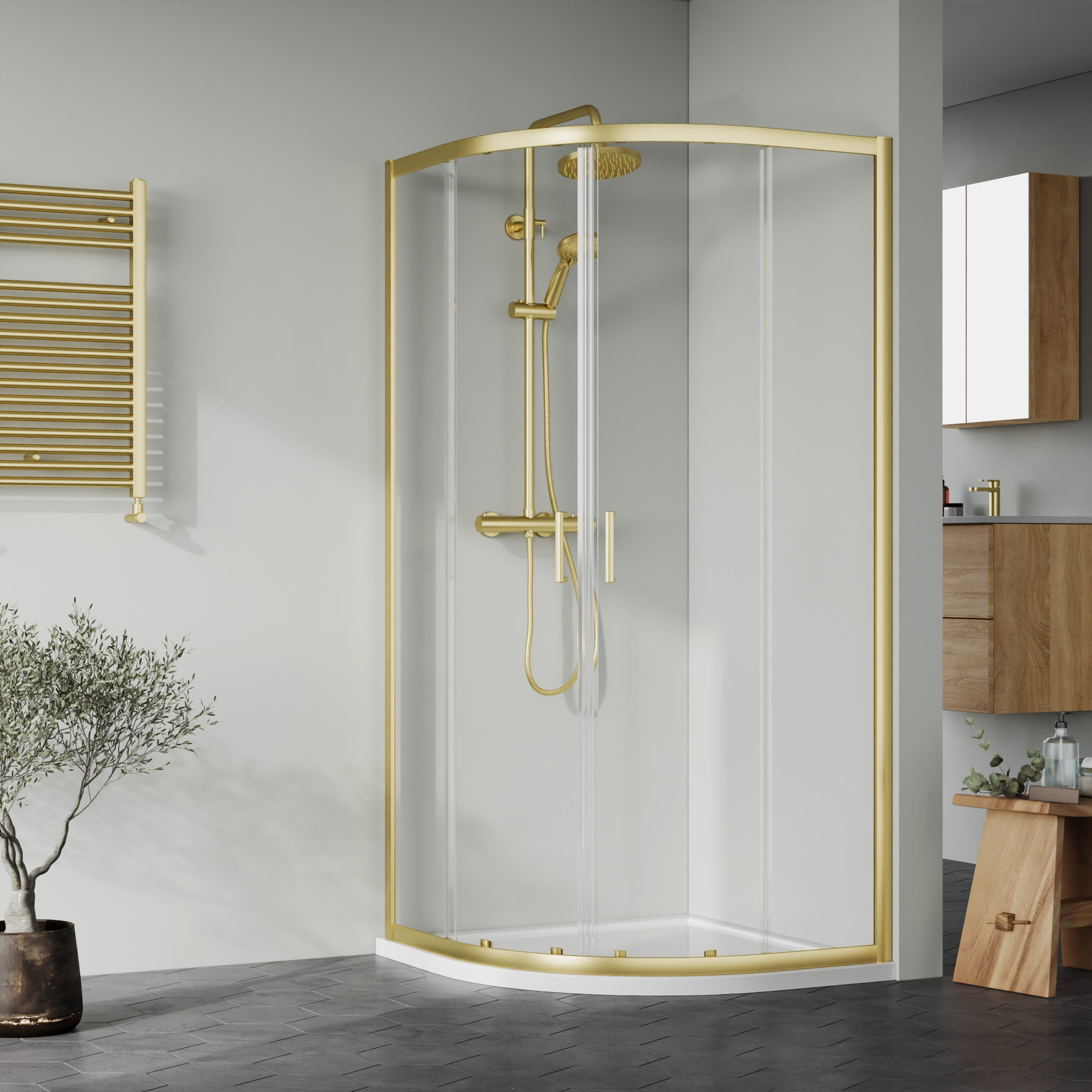 Nuie Brushed Brass Quadrant Shower Enclosure Tray & Waste Shower Enclosure Package - 900 x 900mm