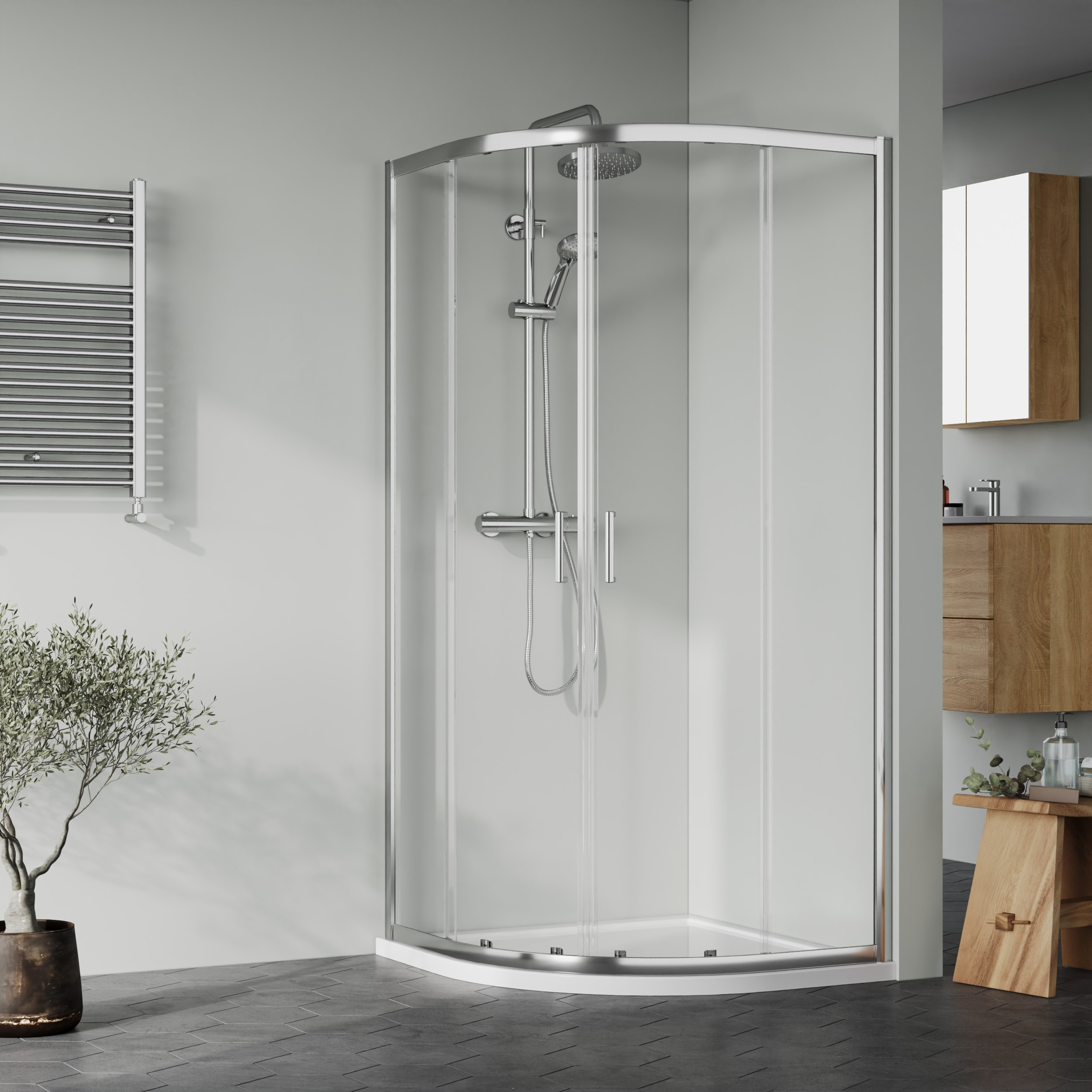 Nuie Chrome Quadrant Shower Enclosure Tray & Waste Shower Enclosure Package - 900 x 900mm