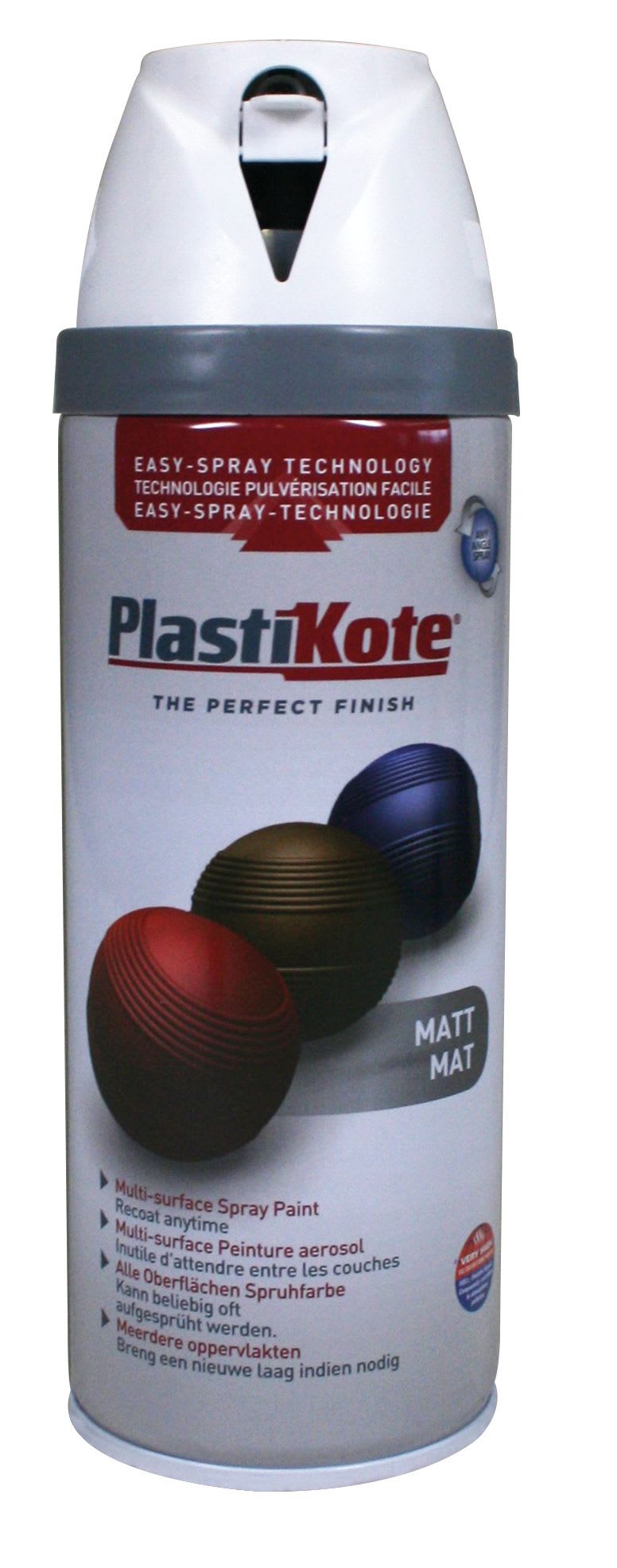 The PlastiKote Multi-Surface Matt Spray Paint gives an enhanced, consistent coverage. The easy spray technology provides added control to make spray painting easier, faster and cleaner. Each coat is ultra-smooth, providing flawless coverage that dries quickly to a tough, durable finish. The paint can be recoated at anytime for simple, faster project completion.