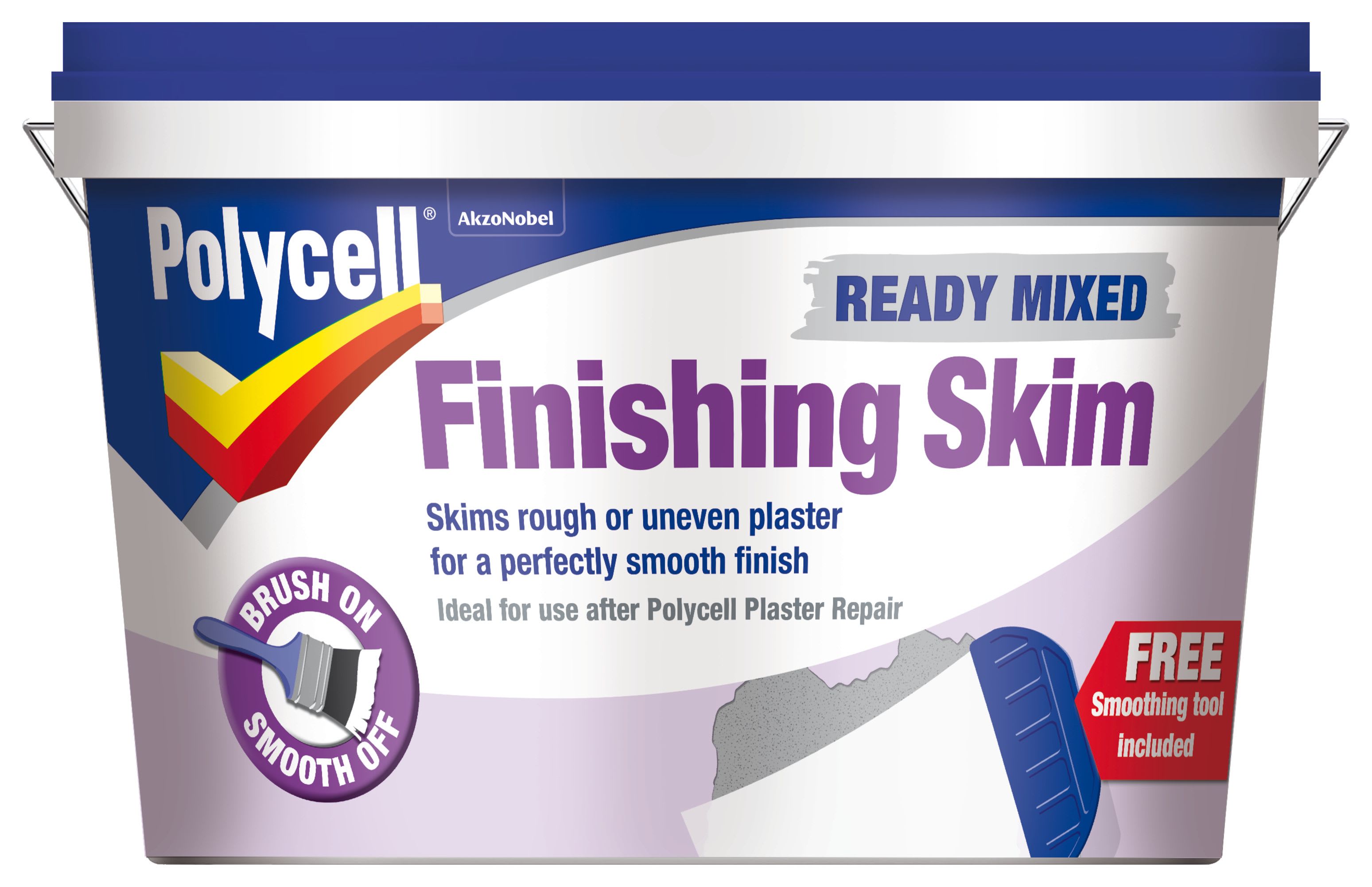 - Polycell Ready Mixed Finishing Skim is the easy way to give a beautiful smooth finish to slightly rough or uneven plaster. Ready mixed for ease of use, it will skim up to 3mm thick and adheres strongly to plaster. Simply brush it on and smooth off