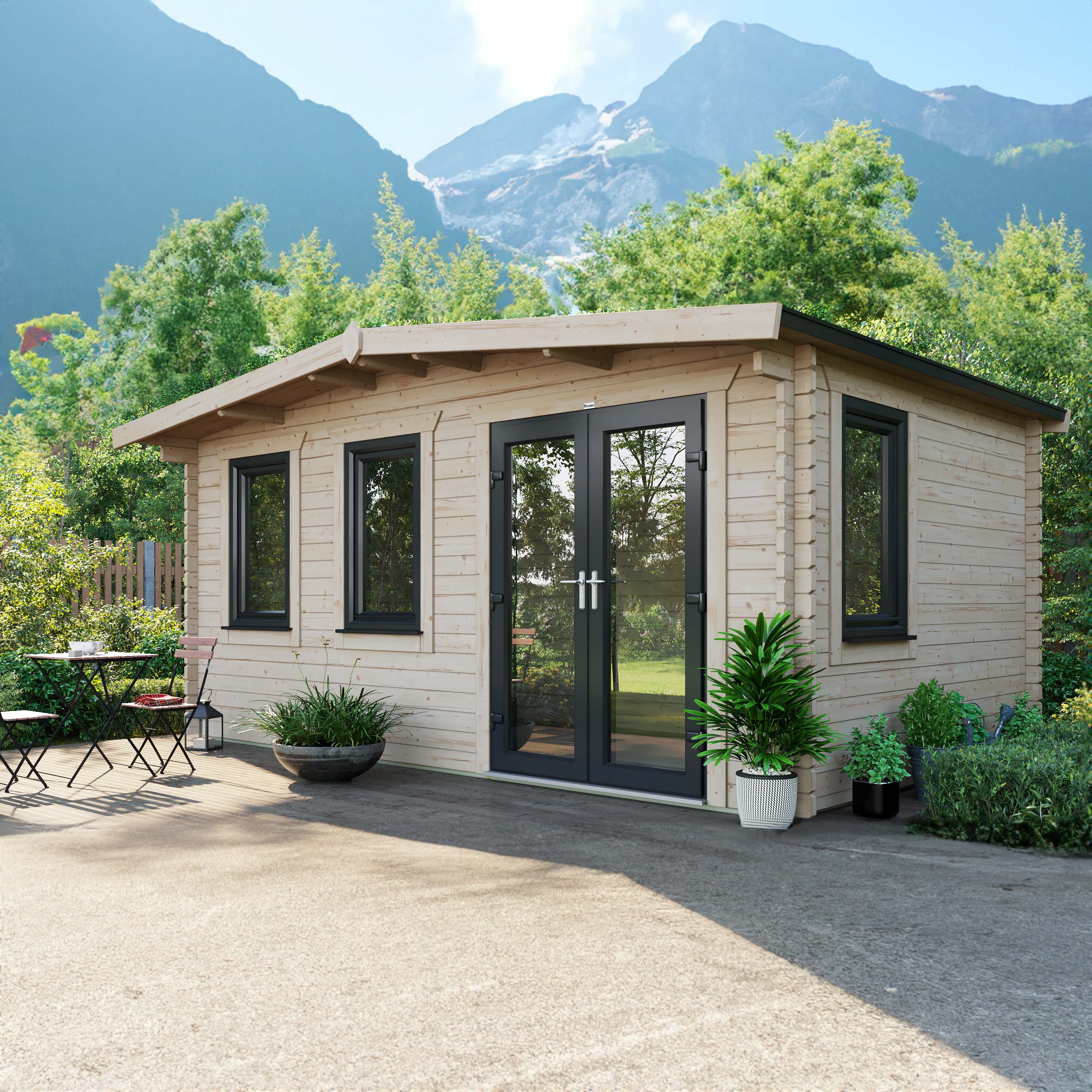 The Powersheds Right Hand Door Apex Chalet Log Cabin comes complete with uPVC double doors in anthracite grey and uPVC 'tilt and turn' opening windows. All glass is both toughened and double glazed, perfect for extra security and insulation.