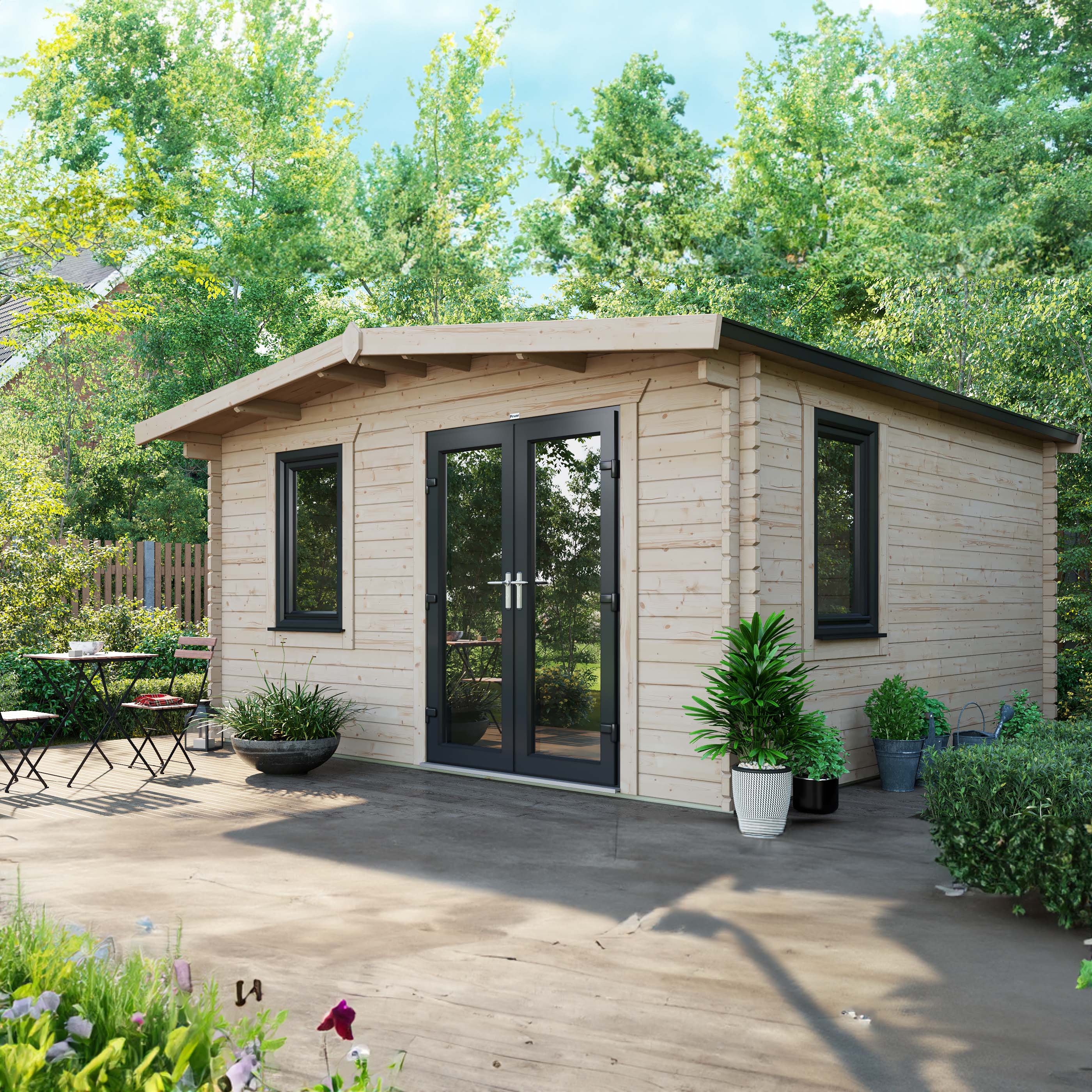 Powersheds Right Hand Door Apex Chalet Log Cabin - 14 x 14ft