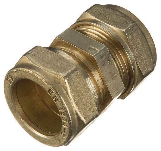 Primaflow Brass Compression Straight Coupling - 28mm is designed to join two lengths of 28mm pipework together in a straight line. Compression plumbing fittings are a popular choice for both professional plumbers and DIY enthusiasts due to their ease of use and versatility. Typically consisting of a nut, a compression olive and the fitting body. The olive is compressed onto the pipe when the nut is tightened, creating a seal without any need for soldering.